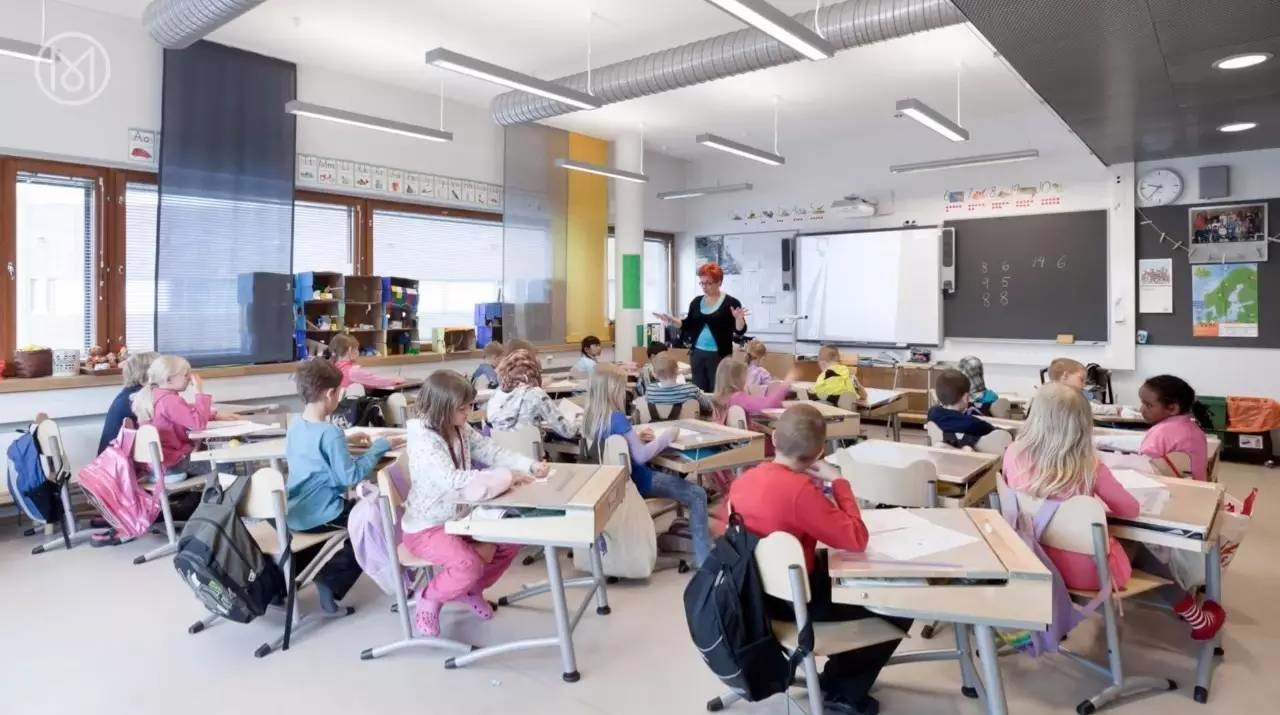 Phần Lan cũng không phí thời gian và tiền bạc vào những kỳ thi đại chúng nhưng chất lượng thấp. Thay vào đó, học sinh được thầy cô trực tiếp đánh giá mỗi ngày. Trong lớp, trẻ được phép vui vẻ, chơi đùa, cười nói và mơ mộng, theo tiêu chí “hãy để trẻ con là trẻ con”, “công việc của trẻ là chơi đùa”, và “trẻ em học hiệu quả nhất thông qua hoạt động vui chơi”. Môi trường lớp học được xây dựng một cách ấm áp, an toàn, tôn trọng lẫn nhau và đặc biệt hỗ trợ cho sự phát triển của trẻ. Không hề có những bài học đã được soạn sẵn, buộc học sinh phải đi thẳng hàng hoặc ngồi thẳng đơ như cọc gỗ trên ghế.