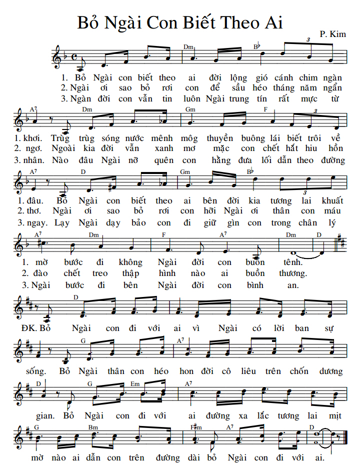 Có một quãng thời gian dài bước đi trên con đường âm nhạc, ông P.Kim vẫn chưa dừng lại. Người nhạc sĩ cần cù này vẫn ngày ngày không ngừng làm việc, trau dồi bản thân để tìm đến những chân- thiện - mỹ tô điểm cho người, cho đời. Thánh nhạc với ông gắn liền với niềm tin, nên cứ như tựa của bài hát danh tiếng của ông : “Bỏ Ngài con biết theo ai…”.