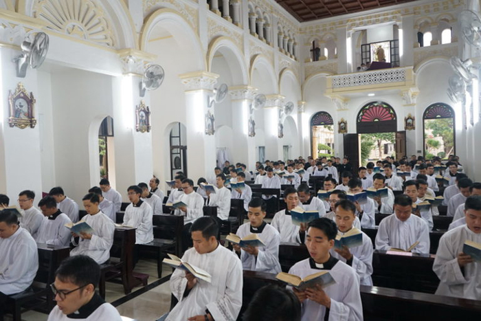 Nhằm chuẩn bị cho năm học mới 2021 - 2022, các ứng sinh Chủng viện Thánh Phêrô Nguyễn Văn Tự, giáo phận Bắc Ninh đã bước vào kỳ linh thao từ ngày 24.10 đến 29.10 với chủ đề:“Ðến với Ba Ngôi qua kinh Lạy Cha”, qua sự hướng dẫn của cha linh hướng Phêrô Trần Vinh Danh, dòng Tên. Thánh lễ khai giảng được tổ chức khi khóa tĩnh tâm kết thúc. Ðức cha Cosma Hoàng Văn Ðạt, Giám mục giáo phận Bắc Ninh đã đến chủ sự thánh lễ này. Chủ đề của năm học ở Chủng viện Thánh Phêrô Nguyễn Văn Tự là: “Chúng con tin ở tình yêu Thiên Chúa”, (1 Ga 4,16). Ðức cha Cosma mời gọi ứng sinh noi gương Chúa Giêsu. Mặc dù bị treo trên thập giá nhưng Ngài vẫn tin vào tình yêu của Chúa Cha. Vậy nên khi cảm thấy đau khổ thì hãy nhớ đến ý cầu nguyện, để từ đó biết giữ vững niềm tin vào Chúa trong mọi hoàn cảnh, biết đón nhận với tất cả tình yêu và sống phó thác. (Thiên Mi)