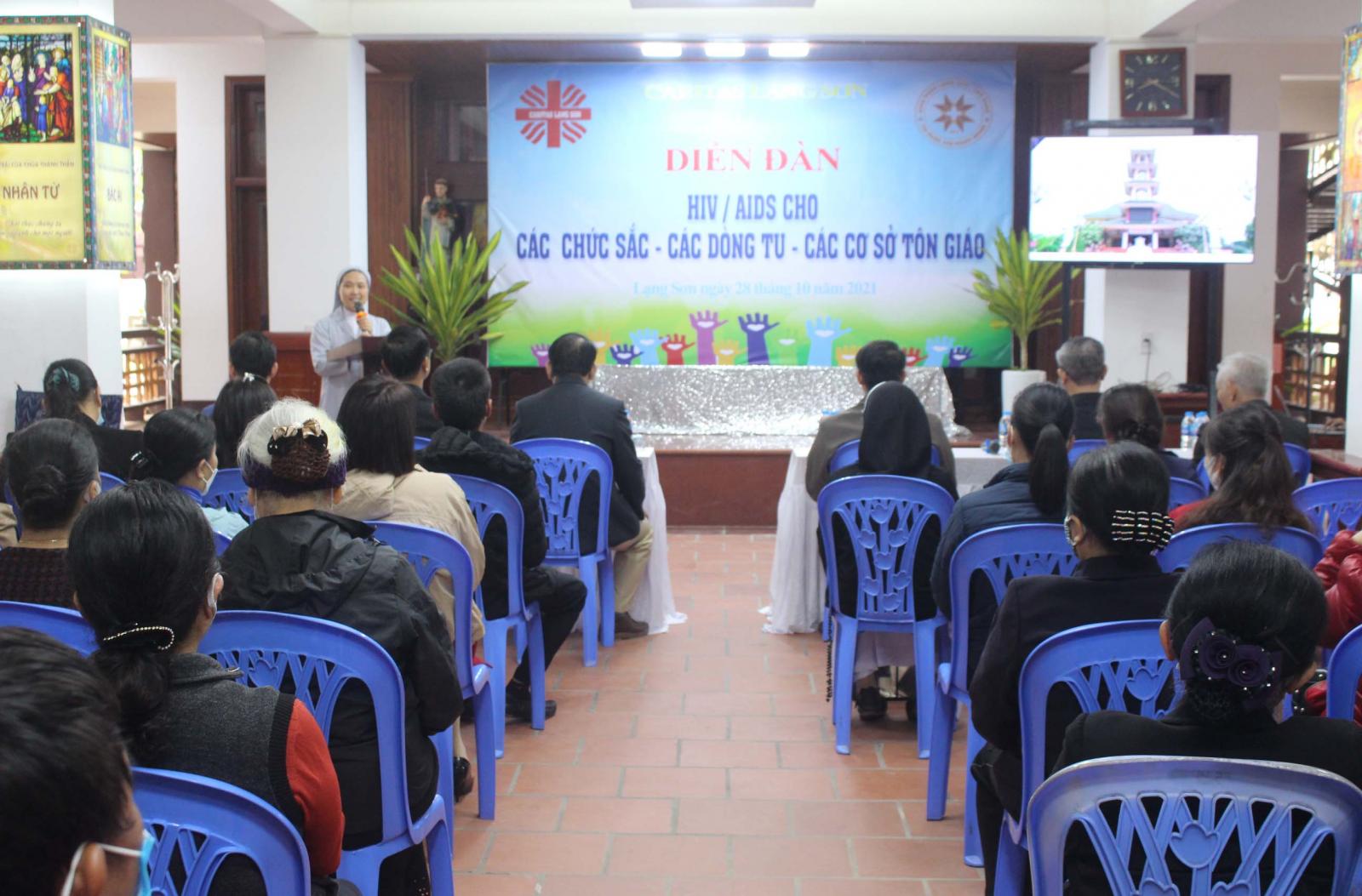 Caritas Lạng Sơn đã tổ chức “Diễn đàn HIV/AIDS cho các chức sắc, các dòng tu, các tổ chức tôn giáo” tại Tòa Giám mục vào ngày 28.10. Có 70 người tham gia buổi gặp gỡ. Chương trình nhằm mục tiêu giúp tham dự viên tìm hiểu sâu hơn về căn bệnh AIDS. Bác sĩ Phạm Tiến Dũng, Trưởng phòng Truyền thông Trung tâm Kiểm soát Bệnh tật thành phố Lạng Sơn chia sẻ đề tài “Thực trạng HIV/AIDS tại Lạng Sơn. Những giải pháp hỗ trợ người nhiễm H.”. (caritasvietnam.org)
