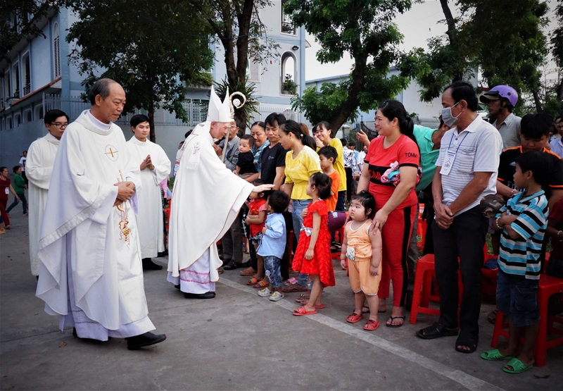 Ngày chính lễ, tại Bà Rịa, Ðức cha Emmanuel Nguyễn Hồng Sơn đã dâng lễ cho các anh chị em di dân nơi giáo phận này tại nhà thờ xứ Thanh Phong, hạt Tân Hương. Chia sẻ niềm vui Noel với những người xa quê, vị chủ chăn mời gọi hãy luôn để ý canh tân cuộc sống, dù có đang trong tình trạng tha phương vì làm ăn, công việc, song Chúa không hề bỏ rơi bơ vơ giữa dòng đời. “Ðừng thờ ơ dẫu mình đang ở một nơi không phải quê mình, ở một nhà trọ không ai quen. Vì cho dù thế nào đi nữa, chúng ta vẫn là con cái Chúa, biết Chúa đã đến và yêu thương chúng ta. Hãy nhớ đến Chúa trong lời kinh nguyện của mình hằng ngày, trong lúc chúng ta làm việc mưu sinh. Hãy để Chúa ở trong ta, làm việc với ta và biết thể hiện đời sống đức tin của người con cái Chúa…”.
