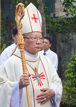 Ðức cha GB Bùi Tuần, nguyên Giám mục giáo phận Long Xuyên: Trước khi được tấn phong ngày 30 tháng 4 năm 1975, khi được thông báo mình được mời gọi nhận sứ vụ Giám mục, tôi nhớ trong bữa tiệc ly, Chúa Giêsu đã nói với các môn đệ của Người rằng:“Thầy trao ban cho anh em một giới răn mới, là anh em hãy yêu thương nhau, như Thầy yêu thương anh em”(Ga 13, 34). Có thể là tình hình thời điểm đó rất phức tạp, nên chính Chúa đã soi cho tôi chọn câu “Giới Luật yêu thương” trích từ đoạn Lời Chúa trên đây làm khẩu hiệu, để ơn gọi Giám mục của tôi có phương hướng rõ ràng và chắc chắn. Tôi đã sống theo hướng đó. Bây giờ, nhìn lại ơn gọi,tôi thấy yêu thương là một chuyến đi. Tôi đi từ ngày này sang ngày khác, với niềm khao khát góp được phần nào trong việc xây dựng yêu thương cho những nơi tôi phục vụ.