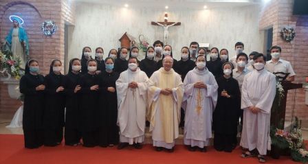 Hiệp thông trong thánh lễ có linh mục Giuse Hoàng Xuân Hương, dòng Tông Ðồ Cầu Nguyện; cha Antôn Nguyễn Anh Tuấn, dòng Ðức Mẹ Vô Nhiễm; các nữ tu cộng đoàn Camelô thuộc hội dòng Mến Thánh Giá Hưng Hóa... Khởi đầu thánh lễ, thay mặt cộng đoàn, cha Antôn Nguyễn Anh Tuấn gởi lời chúc mừng Ðức cha Antôn. Ðức cha đã mời gọi cộng đoàn hiệp ý với ngài trong tâm tình tri ân và cảm tạ Thiên Chúa đã gìn giữ và đồng hành, đồng thời không quên nhắn nhủ cộng đoàn phụng vụ luôn sống tâm tình sám hối.