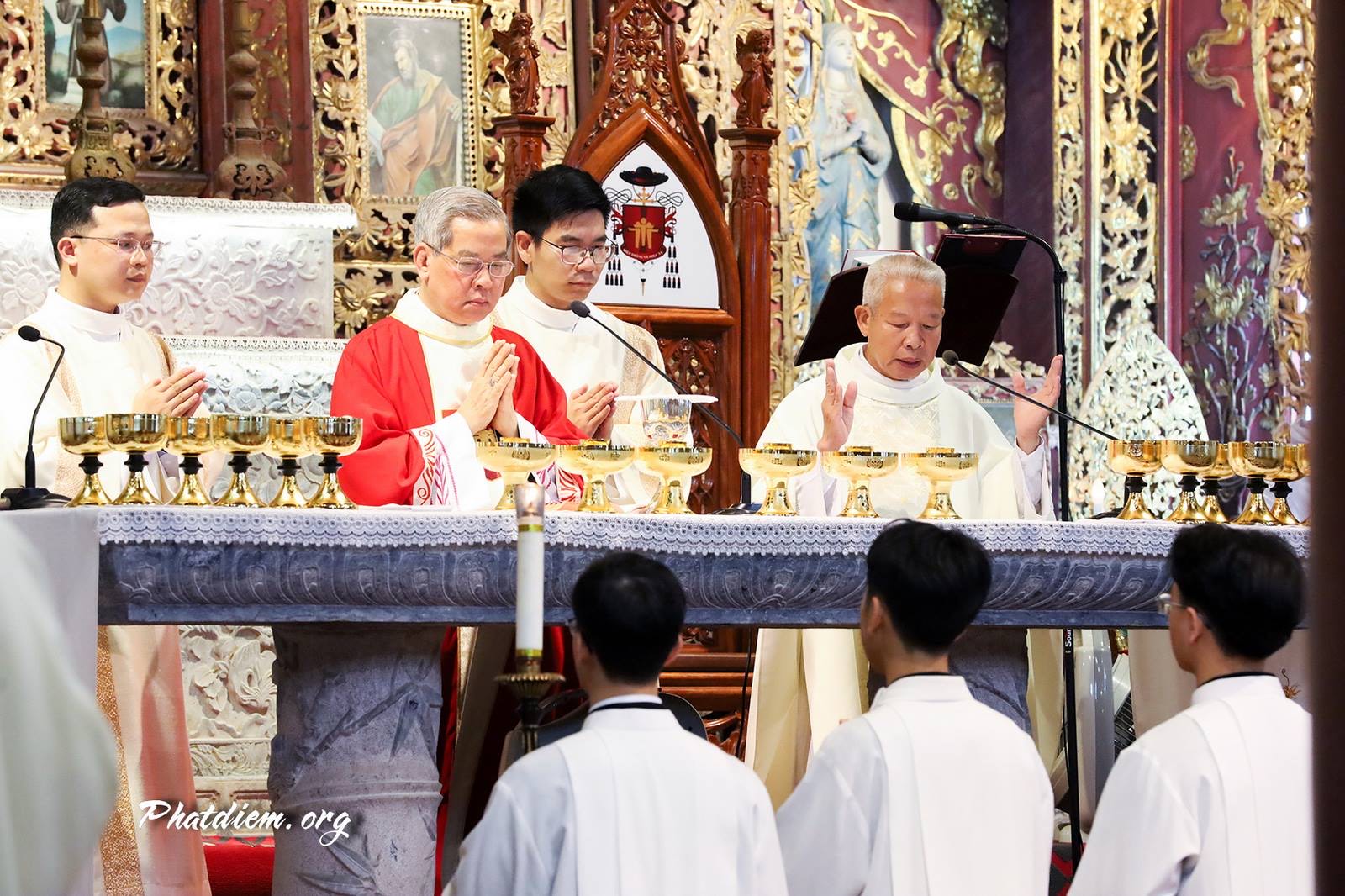 Đông đảo các thành phần Dân Chúa Phát Diệm đến dự lễ như một cách hiệp thông tạ ơn và chia tay vị chủ chăn. Chia sẻ với cộng đoàn Dân Chúa, Đức Tổng đã dựa vào bài Tin Mừng lễ kính Thánh Marcô, nhấn mạnh về tầm quan trọng của việc rao giảng Tin Mừng như là sứ vụ duy nhất và mời gọi cộng đoàn suy ngẫm về sứ vụ rao giảng Tin Mừng.