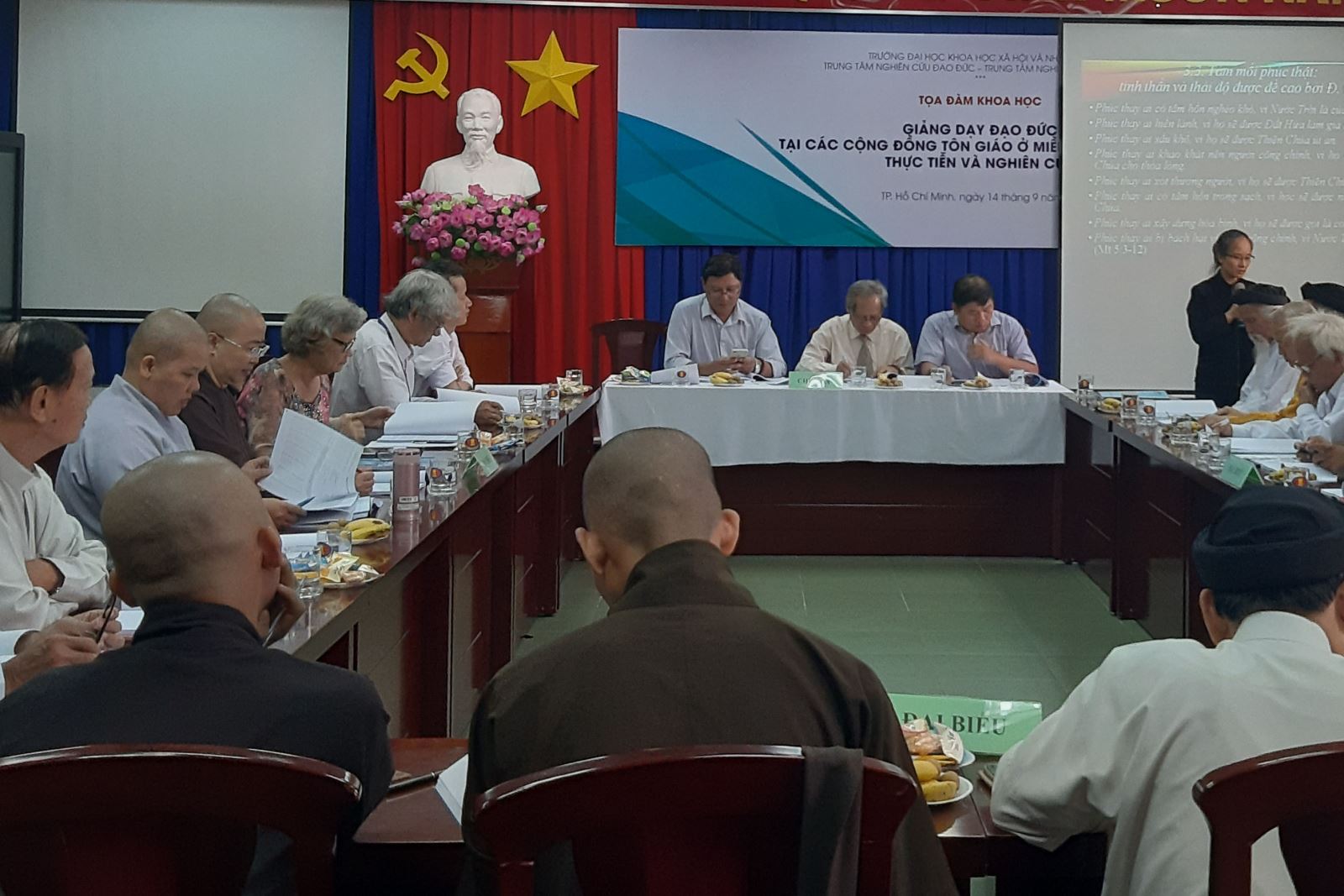 Sáng 14.9.2019, Trung tâm Nghiên cứu Ðạo đức phối hợp với Trung tâm Nghiên cứu Tôn giáo, Trường Ðại học Khoa học xã hội và nhân văn TPHCM tổ chức tọa đàm khoa học “Giảng dạy đạo đức tại các cộng đồng tôn giáo ở miền Nam Việt Nam: Thực tiễn và nghiên cứu”.