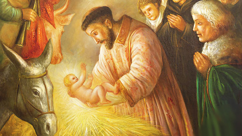 Một đêm tháng Mười Hai, sư huynh Francis cùng một bạn đồng hành đang bước trong thung lũng xinh đẹp nơi con sông Velino chảy qua,[1] hướng về thành phố nhỏ Rieti, nơi sư huynh thường ghé lại trên đường từ Assisi tới Rome. Đêm nay sư huynh đi hơi chếch khỏi đường cái, vì muốn mừng Giáng Sinh cùng người bạn là ngài John ở Greccio, một nơi bé xíu trên vùng đồi thấp sát chân núi, bên phía tây thung lũng. Đôi bàn chân sư huynh Francis quá đỗi rành rẽ con đường này nên thừa sức cất bước an lành trong đêm đen. Nhưng trời lại không tối. Vầng trăng tròn treo lơ lửng bên trên thung lũng khiến cho dòng sông hẹp và những đường viền sắc lẻm bằng tuyết phủ lên mấy ngọn núi đều sáng trắng một màu bạc. Đồng bằng và những đồi thấp là đồng cỏ để thả gia súc. Không xa con đường, trên một sườn dốc rậm cỏ, hai sư huynh nhìn thấy le lói sắc đỏ từ bếp lửa sắp tàn của những người chăn cừu. “Chúng ta hãy dừng chân ghé thăm mấy anh em mình, là các bạn chăn cừu ấy”. Sư huynh Francis nói vậy và hai tu sĩ rẽ về hướng ngọn lửa đang lụi dần.