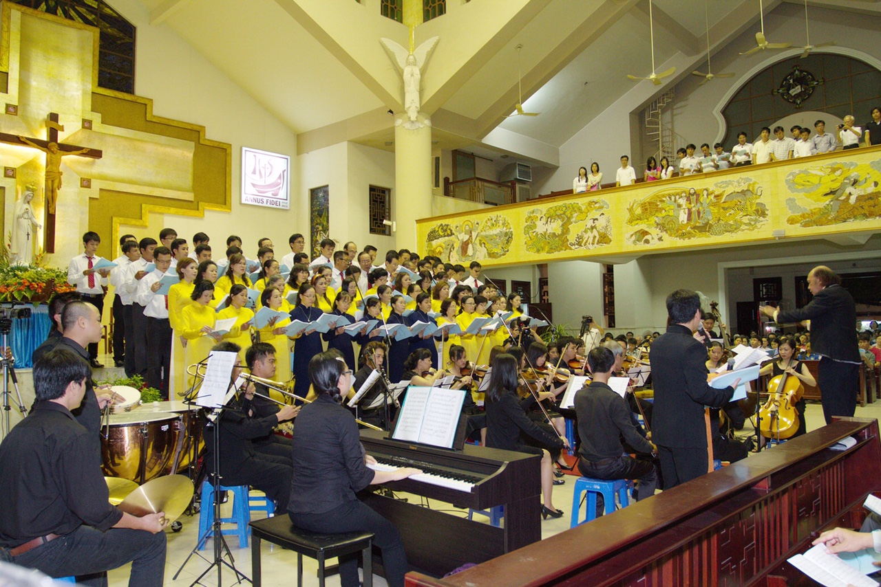 Từ năm 1999, nhạc sĩ Vũ Ðình Ân đã ấp ủ ý tưởng phổ nhạc, đưa Truyện Kiều vào thể loại hợp xướng và ông mất 2 năm để hoàn thành. Tác phẩm hợp xướng này gồm 3 chương: Mối tình đầu, Hồng nhan bạc phận, Tình chị duyên em, đã từng ra mắt thành công tại sân khấu Trung tâm Văn hóa Phú Nhuận (tháng 9/2001) với thời lượng hơn 1 tiếng đồng hồ; sau đó còn được công diễn chính thức ở Nhà hát Bến Thành (tháng 9.2008), nhà thờ Chánh tòa Ðà Lạt (đêm 5.12.2016). Và đặc biệt, được biểu diễn ngay trên quê hương Hà Tĩnh của Ðại thi hào Nguyễn Du (12.2015) nhân kỷ niệm 250 năm ngày sinh nhà thơ.