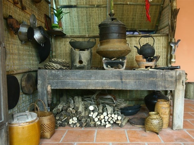 Bếp được cánh phụ nữ chăm chút sạch sẽ, những vật dụng nấu ăn như nồi, chảo, dao… sắp xếp ngăn nắp, đẹp mắt. Từ bếp ấy đến giờ khói nghi ngút vươn cao, tự đồng xa nhìn vẫn thấy, gieo hình ảnh ấm cúng của làng quê, mái gia đình đơn sơ mà đầm ấm. Ở quê, dường như nhà nào cũng có gian bếp với khoảng không gian đủ rộng. Ngày giỗ chạp, lễ tết, họ hàng tề tựu đông đủ, bếp có tới năm, bảy chị em ngồi cùng xào nấu. Cánh nữ vừa làm bếp vừa tâm sự nhỏ to, rôm rả.
