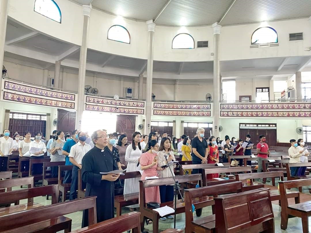 Vào đầu quý IV/2022, giáo xứ có thêm thánh lễ bằng tiếng Anh cho người nước ngoài vào sáng Chúa nhật. Thánh lễ này khá đặc biệt vì hiện trong giáo phận Xuân Lộc dường như chưa có. Khoảng chục năm trở lại đây, khi thành phố Biên Hòa mở nhiều tuyến đường mới, nhiều khu phố mới hình thành… đã thu hút khá đông người nước ngoài về làm việc. Lễ tiếng Anh có gần 200 người nước ngoài tham dự. Có nhiều người là giáo viên của ngôi trường quốc tế nằm cạnh nhà thờ. Đặc biệt, để thánh lễ diễn trang trọng, đồng thời tạo sự liên kết, cha Đaminh cũng quy tụ ca đoàn để tập hát lễ tiếng Anh. Ca đoàn có trên 50 thành viên. Không chỉ người nước ngoài mà có nhiều người Việt thích tiếng Anh. Anh Nguyễn Đức Hậu, từng có thời gian học ở Phillipines, cho biết: “Tôi bỏ tiếng Anh một thời gian không dùng nên cũng có phần quên nhưng giáo xứ chuẩn bị cả giấy in hỗ trợ song ngữ rất chu đáo. Bạn tôi người nước ngoài đang sống ở Biên Hòa cũng rất vui vì có thể dự lễ. Mong sao thánh lễ tiếng Anh sẽ được duy trì và phát triển bền bỉ”.