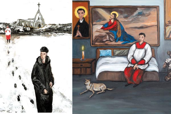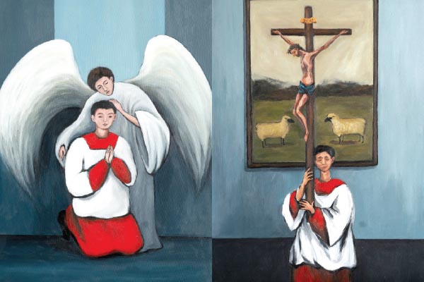 Công việc giúp lễ và phụng vụ sốt sắng đó cũng có thể gieo mầm ơn gọi cho một số cậu bé giúp lễ nuôi ý muốn vào chủng viện sau này (như trong bức miêu tả một thiên sứ bên ngoài cửa đến truyền tin là ơn kêu gọi, và cậu bé đứng trước chọn lựa trước con đường thập giá với quả banh màu đỏ đang lăn trên sàn có lẽ biểu tượng cho sự hy sinh tuẫn đạo, sau lưng là bức ảnh cha Trương Bửu Diệp). Đôi khi miêu tả tâm trạng xao xuyến lúc đang cầu nguyện trước giờ giúp lễ, cậu bé bỗng chia trí quay lưng với thập giá, hướng ra khung cửa dõi theo một tà áo trắng thoáng qua ở bên ngoài…