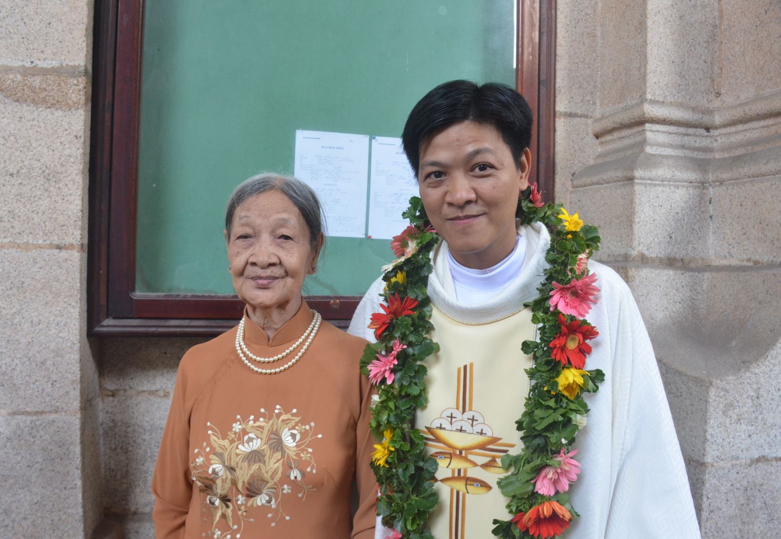 Ngồi những hàng ghế đầu trong lễ là thân nhân các tiến chức. Nhìn trên khuôn mặt từng người thấy niềm vui hiện rõ, trong đó hạnh phúc nhất có lẽ không ai ngoài ông bà cố, những người đã sinh thành, dưỡng dục, theo sát con trong suốt hành trình theo đuổi ơn gọi. Chúng tôi gặp bà cố Maria Ðặng Thị Mỵ, mẹ của tân chức Giuse Lê Quốc Hùng, biết được cha là út trong gia đình 9 người con. Ông cố mất cách đây đã 12 năm. “Hôm nay ở đâu đó có lẽ ông ấy cũng vui lắm vì đây là niềm mong ước của ông lúc sinh thời. Bản thân tôi giờ già rồi, 84, nhưng hằng ngày vẫn sẽ cầu nguyện để cảm tạ Chúa và xin cho con được nhiều ơn lành”, bà Mỵ nói trong sự nghẹn ngào niềm vui.