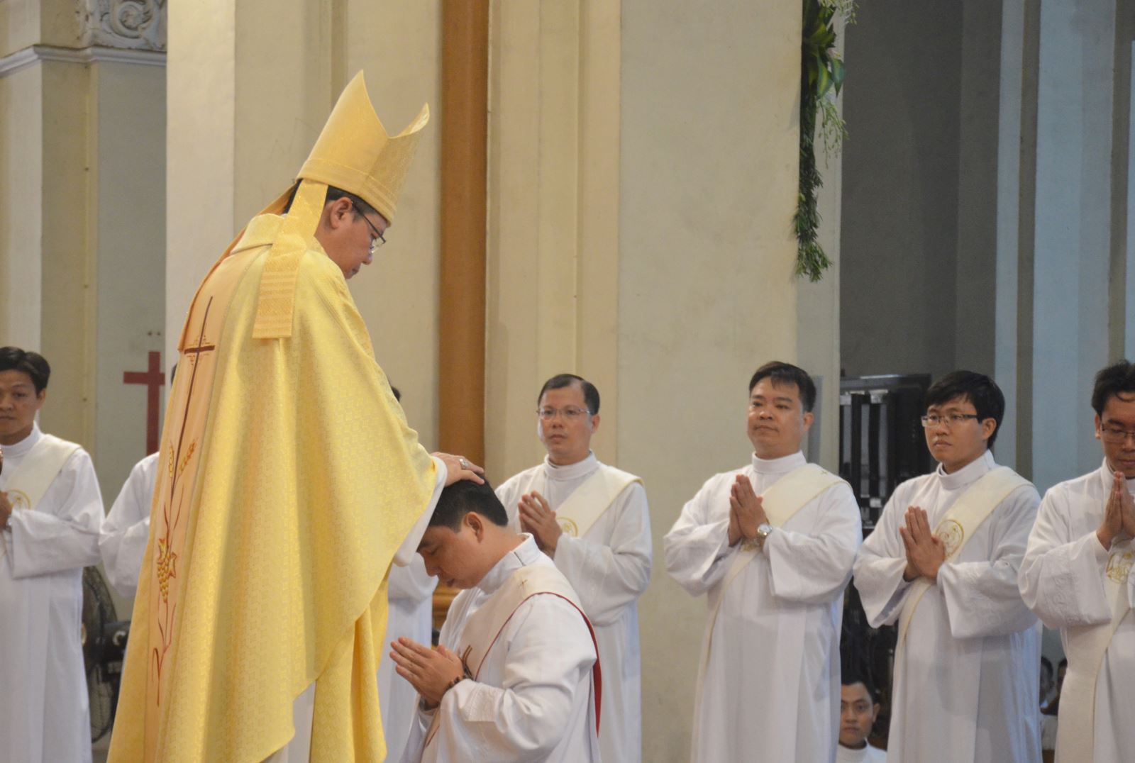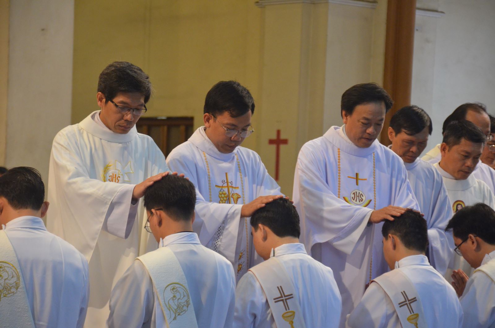 Thánh lễ truyền chức linh mục do Ðức cha Giám quản Giuse Ðỗ Mạnh Hùng chủ sự các nghi thức, cùng đồng tế có cha Tổng Ðại diện Inhaxiô Hồ Văn Xuân và đông đảo linh mục. Chia sẻ với cộng đoàn, cách riêng với các tân chức, Ðức cha chủ tế đã nhấn mạnh đến vai trò cũng như trách nhiệm của linh mục qua giáo huấn của Bộ Giáo sĩ ban hành năm 2016, theo đó linh mục được định nghĩa là môn đệ truyền giáo. Ðịnh nghĩa này bao gồm hai yếu tố, môn đệ và truyền giáo, tức là người biết Chúa, yêu mến Chúa, đi theo Chúa và loan truyền cho người khác cũng biết, yêu và bước theo Chúa. Ðức cha không quên nhắc nhở các tiến chức để trở thành chứng nhân cho Tin mừng Phục Sinh, mỗi người phải bày tỏ cho người chung quanh sự sống yêu thương, tha thứ, sự sống dồi dào của Chúa Giêsu bằng chính đời sống yêu thương, khiêm tốn phục vụ như Chúa đã khẳng định trong Phúc Âm thánh Mátthêu: “Con người đến không phải để được phục vụ nhưng là để phục vụ và hiến dâng mạng sống làm giá chuộc muôn người”.