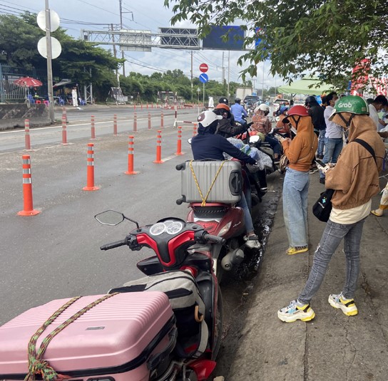 Kể từ thời điểm TPHCM quyết định chấm dứt giãn cách xã hội, đông đảo người nhập cư lại tiến hành cuộc hồi hương. Trở về với nhiều lý do, mà một trong số đó là để đảm bảo cuộc sống an toàn, do cầm cự thời gian dài tại nhà trọ. Anh Nguyễn Minh Quân (30 tuổi, Hậu Giang) cho biết như một số bạn trẻ, anh đã quyết định về quê để tạm thời né dịch: “Sống suốt hai tháng nhận hàng trợ cấp từ các mạnh thường quân, không có gì làm, trong khi lại có con nhỏ, nên vợ chồng tôi quyết định về để dịch thật sự lắng xuống”. Tuy nhiên, trở về không được bao lâu, anh quay lại thành phố để tìm công việc khác. Bởi lẽ, “nhà có con nhỏ và ở quê không thể nào có công việc với thu nhập đủ để xoay sở, chi trả cho tất cả nhu cầu”. Hiện tại, anh vẫn đang nộp đơn và chờ lịch phỏng vấn của các công ty phù hợp. Trong thời gian này, anh đã xin giao hàng cho một trang dịch vụ. Mỗi tháng, trừ tiền nhà trọ, ăn uống, anh tiết kiệm gửi về nhà khoảng 2 triệu đồng. Với người cha trẻ này thì “số tiền này tuy không nhiều như trước, phải chấp nhận thôi. Hiện tại, mỗi ngày các đơn hàng vận chuyển cũng không quá nhiều”.