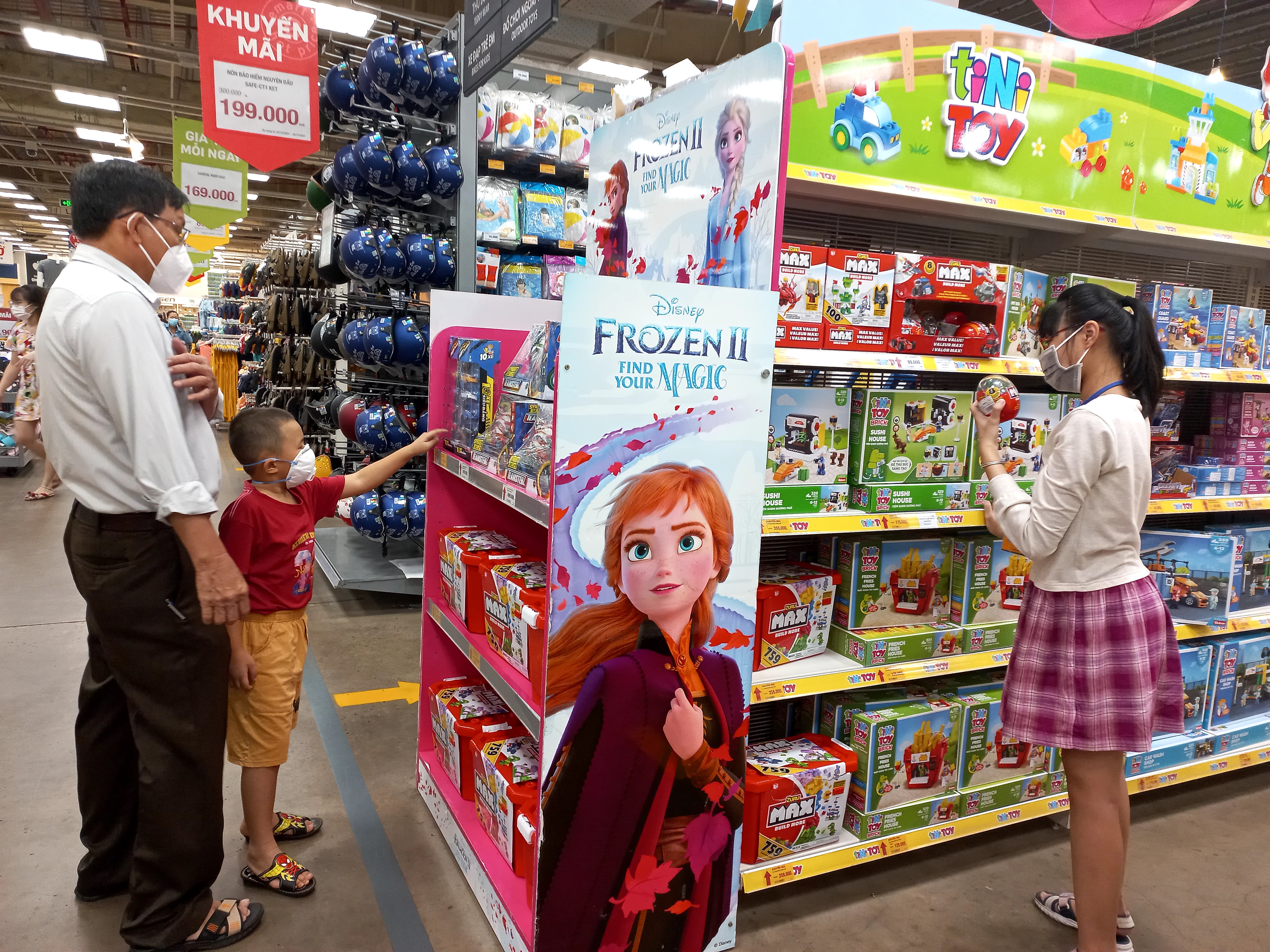 Tại gian hàng đồ chơi của một siêu thị lớn ở quận Gò Vấp, hiện các sản phẩm nhìn chung đều được giảm giá từ 20% cho đến 50%. Anh Hoàng Hải (Q. Bình Thạnh) đang lựa quà cho con trai chia sẻ: “Từ khi con biết đến ‘ông già Noel’ là hằng năm gia đình đều chuẩn bị quà. Năm nay, tôi định sẽ mua cho bé một bộ xe điều khiển từ xa mà bé đã rất thích từ lâu”. Cũng đang cầm lên đặt xuống cân nhắc giữa vài món đồ chơi, chị Thu Hà (Q. Gò Vấp) cho biết: “Vì hiện nay không đến trường được, nên các con sẽ nhận quà Noel ở nhà thay vì gởi lên trường cho các cô tổ chức tiệc nhỏ. Tôi cũng chọn mua đồ chơi mà trước đó mình đã dò hỏi xem con thích gì”.