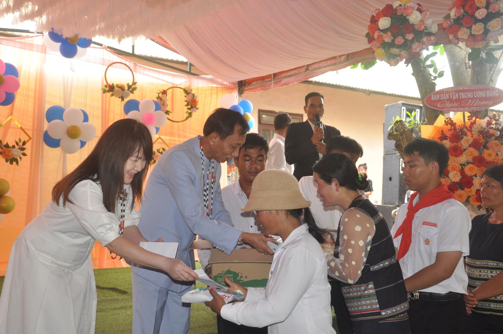 Dịp này, ông Đỗ Văn Phới đã trao tặng 2 phần quà tiền mặt cho quỹ khuyến học và quỹ hỗ trợ gia đình khó khăn của địa phương. Chia sẻ với bà con giáo sở Đăng-Srỗn, ông bày tỏ niềm vui và thể hiện sự quan tâm với bà con giáo dân địa phương. Ông hy vọng giáo sở sẽ phát triển tốt đẹp để cuộc sống càng ấm no, hạnh phúc hơn. Hiệp sĩ Đại Thánh giá GB Lê Đức Thịnh cũng nói lên sự trân trọng với các linh mục gắn bó với giáo sở qua các thời kỳ.