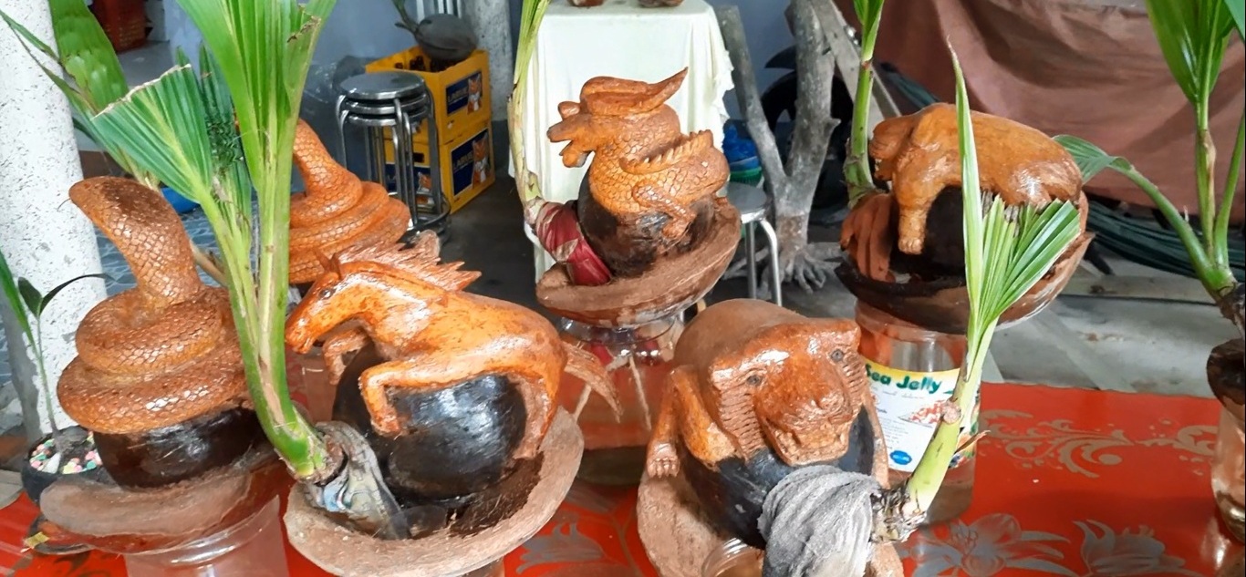 Với nhiều người, quả dừa khô lên mộng chỉ để trồng cây, hoặc bỏ đi thì đối với một ông lão ở Cà Mau, lại là một nguyên liệu tạo nên một kiểu cây bonsai độc lạ. Sản phẩm cho ra không chỉ đẹp mắt, mang tính thẩm mỹ cao, mà còn thể hiện sự chế tác kỳ công, được nhiều người ưa thích. Trong dịp Tết Nguyên Ðán 2022, lão nông này dự tính tạo hình nhiều mẫu linh vật hình con cọp để trưng bày.