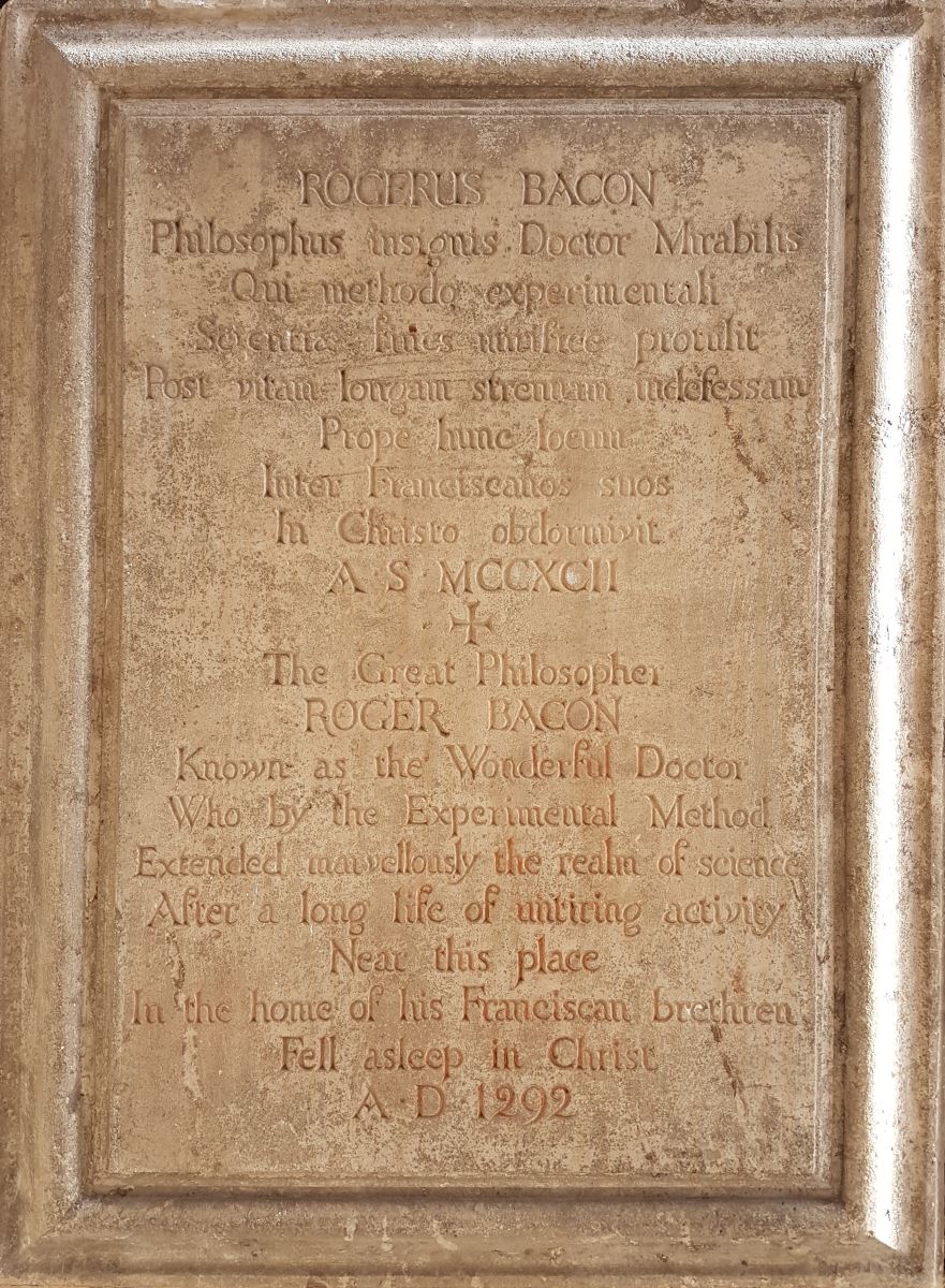 Tu sĩ dòng Phanxicô Roger Bacon (1214-1294) là một nhà bác học lỗi lạc người Anh, với những đóng góp quan trọng về lãnh vực quang học, toán học, ngôn ngữ học, triết học, và đặc biệt là khoa học thực nghiệm.