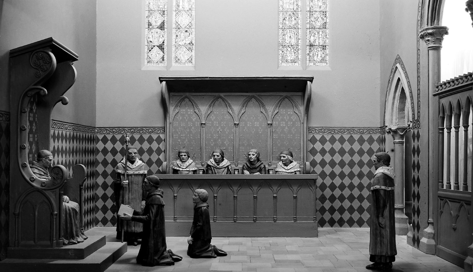 | Tranh vẽ thầy Bacon trình bày về một nghiên cứu của mình với hội đồng của Đại học Paris |
