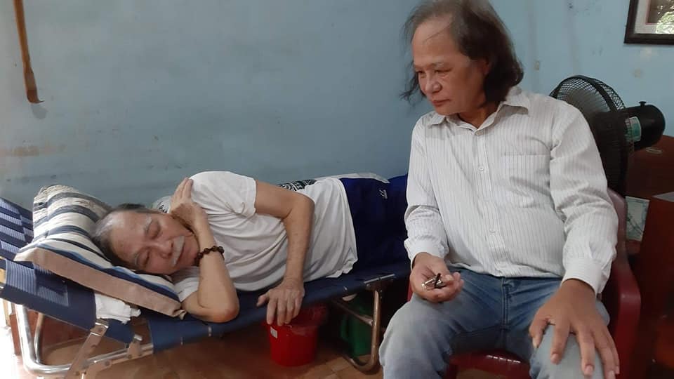 Khi được phu nhân của nhạc sĩ - bà Nguyễn Thị Thuận - mời vào nhà trong, điều khiến chúng tôi an tâm hơn cả là được nhìn thấy bàn thờ và tượng ảnh Lòng Chúa Thương Xót đặt rất trang trọng... Bà Thuận kể cách đây 6 năm, nhạc sĩ bị ung thư bàng quang rồi di căn lên phổi. Sau 4-5 lần phẫu thuật, cắt bỏ hẳn bàng quang thì sức khỏe của ông có phần phục hồi phần nào, ông vẫn sinh hoạt bình thường, chạy xe gắn máy đi ăn hỏi, đám cưới... Chỉ khi đại dịch Covid-19 nổ ra thì mắt ông có những triệu chứng bất thường. Hai ông bà liền dắt nhau ra Bệnh viện Bà Rịa, rồi lên Bệnh viện mắt Sài Gòn, lại qua Bệnh viện 175, Bệnh viện Bình Dân..., nhưng rồi cũng không chữa khỏi những di căn của căn bệnh nghiệt ngã. Ðến lúc này thì cơ thể của ông không còn dung nạp được các loại thuốc đặc trị, mắt bên trái sụp hẳn xuống không thể mở ra được nữa, ông không nói được, dịch chuyển rất khó khăn (phải có người thân dìu), mỗi ngày ông dùng chút ít cháo thịt băm hoặc súp, nhưng tinh thần vẫn rất tỉnh táo.