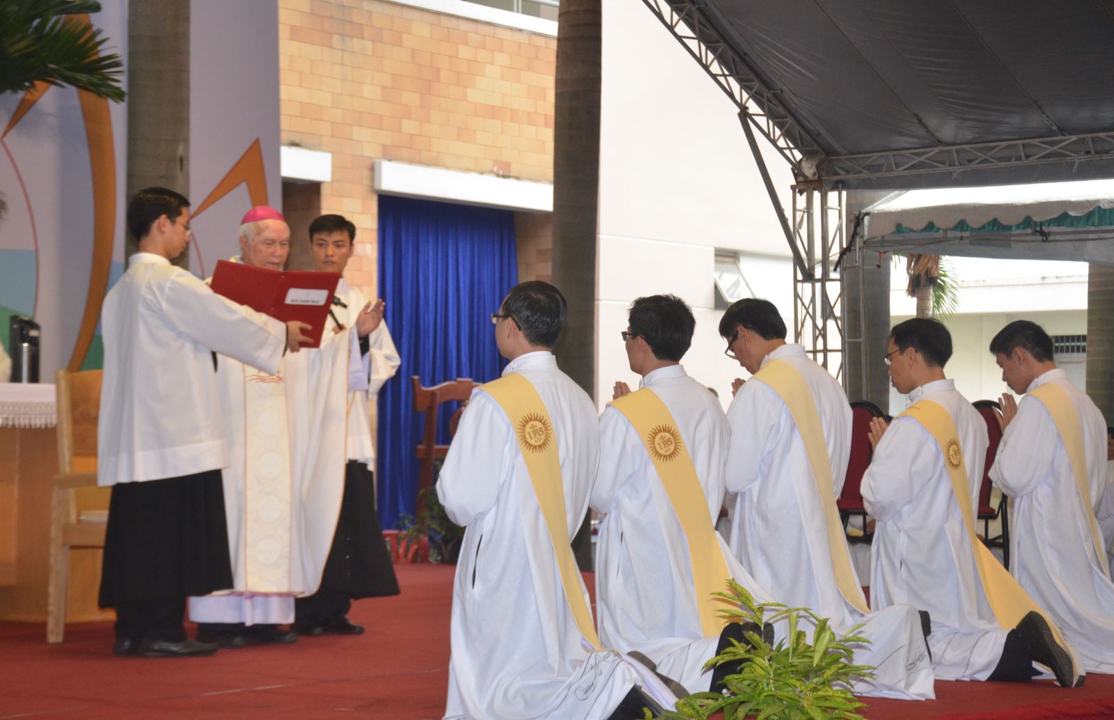 Cũng trong sáng cùng ngày, tại nhà thờ Chánh tòa Bà Rịa, Đức cha Emmanuel Nguyễn Hồng Sơn - Giám mục Giáo phận đã cử hành thánh lễ truyền chức cho 7 thầy phó tế. Đồng tế có Đức cha Tôma Nguyễn Văn Trâm - nguyên Giám mục GP Bà Rịa, cha Giuse Võ Công Tiến - Tổng Đại diện. Nhắn gởi đến các tiến chức, Đức cha Emmanuel nhấn mạnh: “Khi thi hành tác vụ linh mục do Chúa và Hội Thánh trao ban, các thầy phải luôn ý thức được chức năng thánh hóa đoàn chiên, chăn dắt đoàn chiên và rao giảng lời Chúa”. Sau bài Tin Mừng, nghi thức phong chức được cử hành gồm 3 phần: nghi thức Mở đầu, nghi thức Bí tích và nghi thức Diễn nghĩa.
