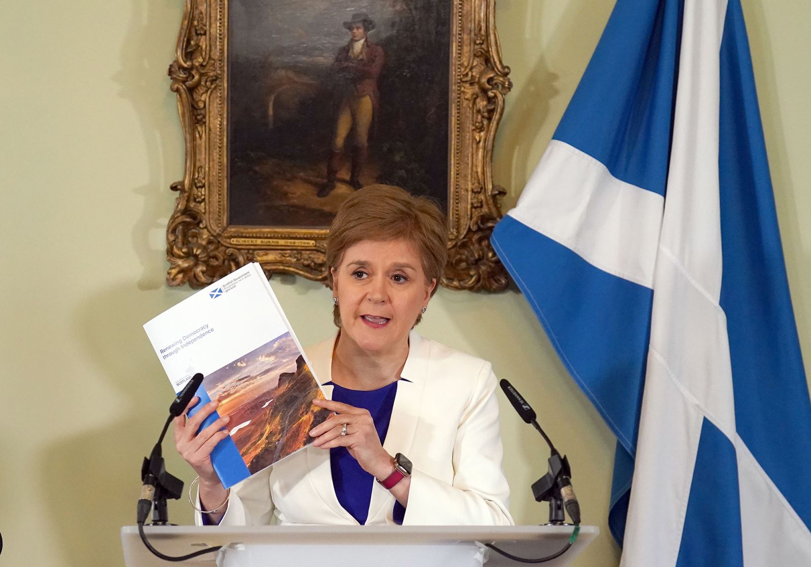 | Thủ hiến Nicola Sturgeon giới thiệu bản báo cáo về việc tách khỏi Anh - ảnh: Getty Images |