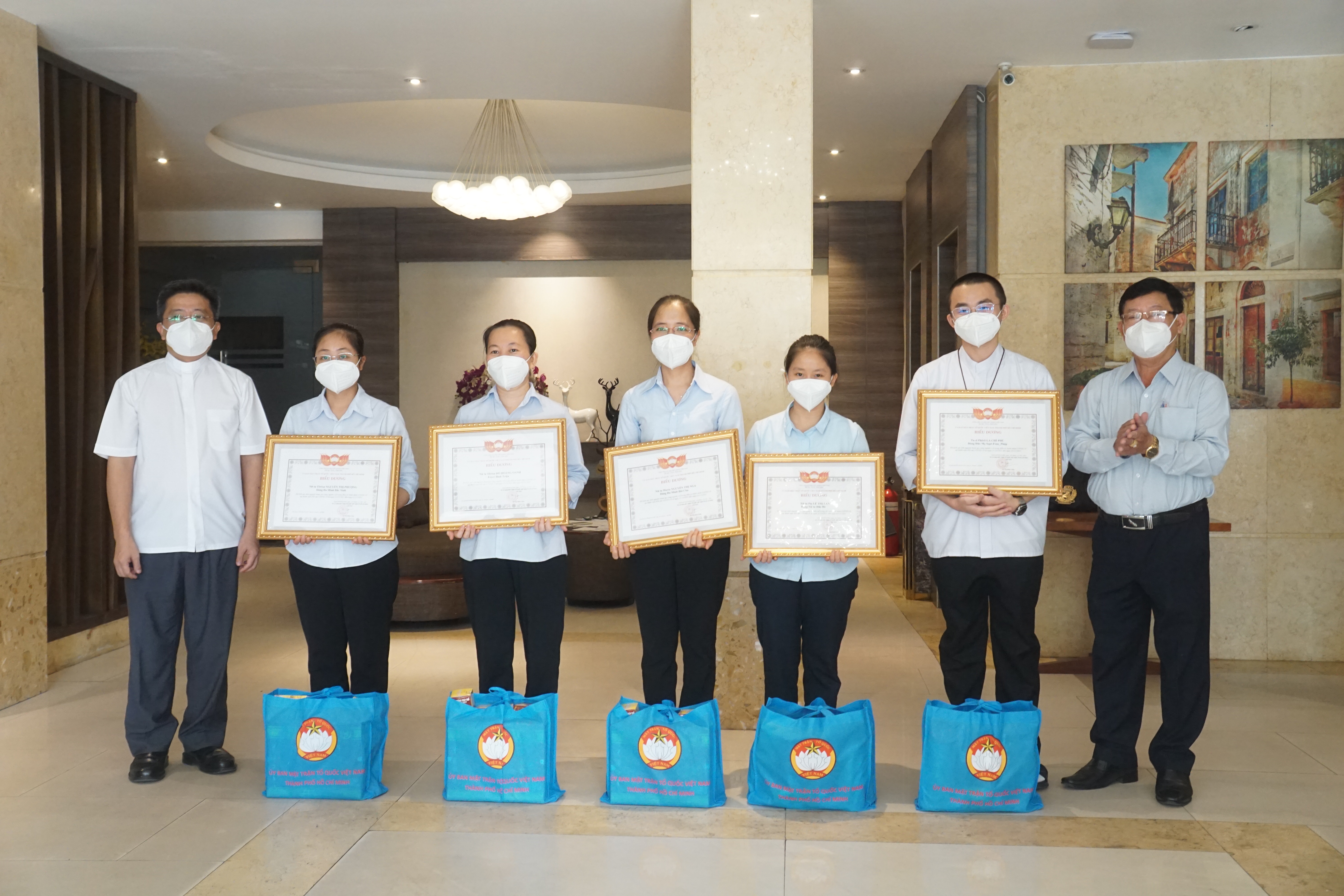 Lễ đón và tri ân 16 tình nguyện viên tôn giáo kết thúc 60 ngày phục vụ ở Bệnh viện Hồi sức Covid-19 (TP Thủ Ðức) đã diễn ra sáng ngày 3.12.2021 tại khách sạn Minh Tâm (Q10).Trong số các tình nguyện viên (TNV), có 5 tu sĩ Công giáo.