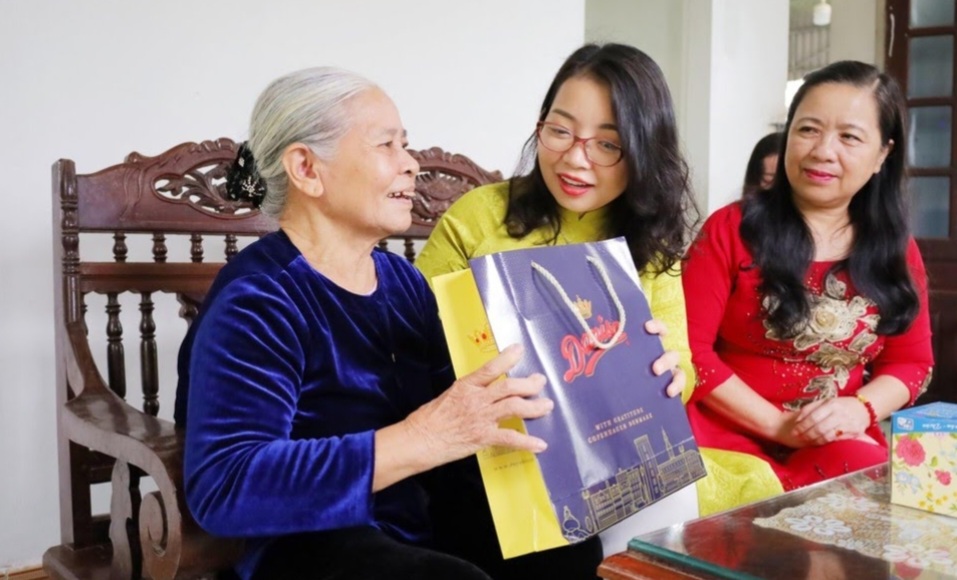 | Bà Nguyễn Thị Trường Bang (áo tím ) - cháu gái - gọi Nguyễn Trường Tộ là cố ngoại |