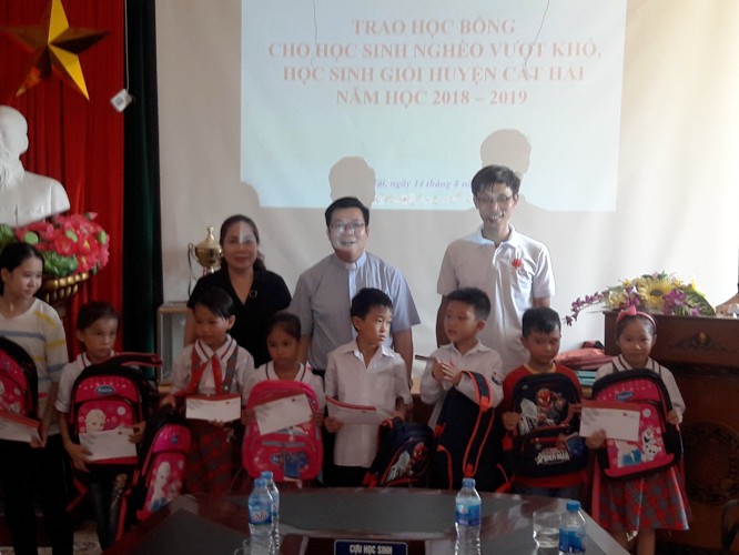 Trung tuần tháng 8.2019, Caritas Hải Phòng đã phối hợp với Hội Khuyến học Cát Hải, tổ chức trao học bổng cho 20 em học sinh nghèo vượt khó trên huyện đảo. Ðây là hoạt động hỗ trợ giáo dục thường niên, được tổ chức vào các dịp trước khi khai giảng mỗi năm học mới, nhằm giúp cho các em học sinh nghèo có thêm một phần kinh phí mua sắm quần áo, sách vở và đóng tiền học.
