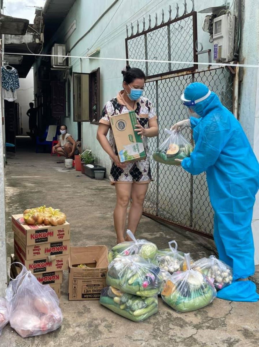 Ðại diện Nhóm Bạn trẻ dòng Con Ðức Mẹ Phù Hộ, chị Maria Hà Ngọc Bích Huyền (giáo xứ Bùi Vĩnh, hạt Tân Mai) cho biết, trong thời gian dịch bệnh, nhờ số tiền gây quỹ của việc rửa xe từ dự án “lây lan hy vọng” do tỉnh dòng khởi xướng, nhóm đã hỗ trợ bà con vùng dịch bắt đầu từ trung tuần tháng 7, khi nhiều phường trong thành phố Biên Hòa bị phong tỏa. Nhờ người dì ruột của Huyền vốn có kinh nghiệm cứu trợ tự phát trước đó hướng dẫn và chung tay, nên cứ vào khoảng 22-23g đêm, hai dì cháu đi tìm mua rau củ ở những vựa trong các khu công nghiệp gần khu vực cư ngụ. Sớm hôm sau, các thành viên cùng chuẩn bị những phần quà để trao đến bà con cần giúp. Ðiểm đầu tiên nhóm hỗ trợ là công nhân thất nghiệp trong những phòng trọ ở khu phố 4A, phường Tân Hòa.