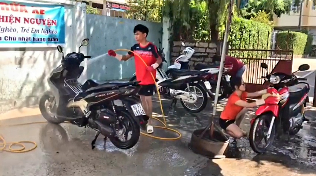 Tiệm rửa xe của nhóm bạn trẻ vừa mở cửa trở lại, nhằm góp phần duy trì quỹ cho những dự án thiện nguyện tiếp theo |