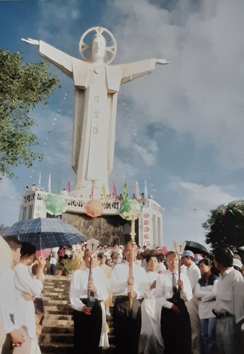 Giữa biển, trời xanh ngắt, bức tượng Chúa Kitô Vua dang rộng đôi tay như ôm cả thế giới vào lòng, là nơi nhiều con chiên Chúa cũng như bao người chẳng phải giáo dân tìm đến hành hương và nhận được nguồn đỡ nâng suốt nhiều năm qua.
