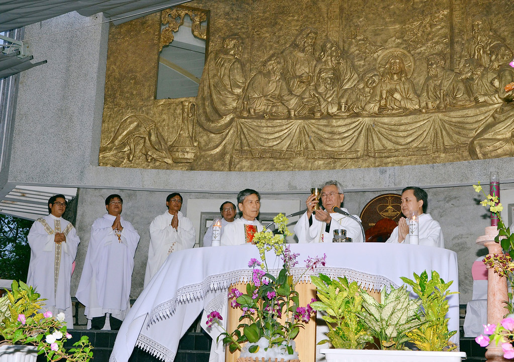 | Đức cha giáo phận Bà Rịa Emmanuel Nguyễn Hồng Sơn chủ sự một thánh lễ hàng tháng dưới chân tượng Chúa - ảnh: giaophanbaria.org |