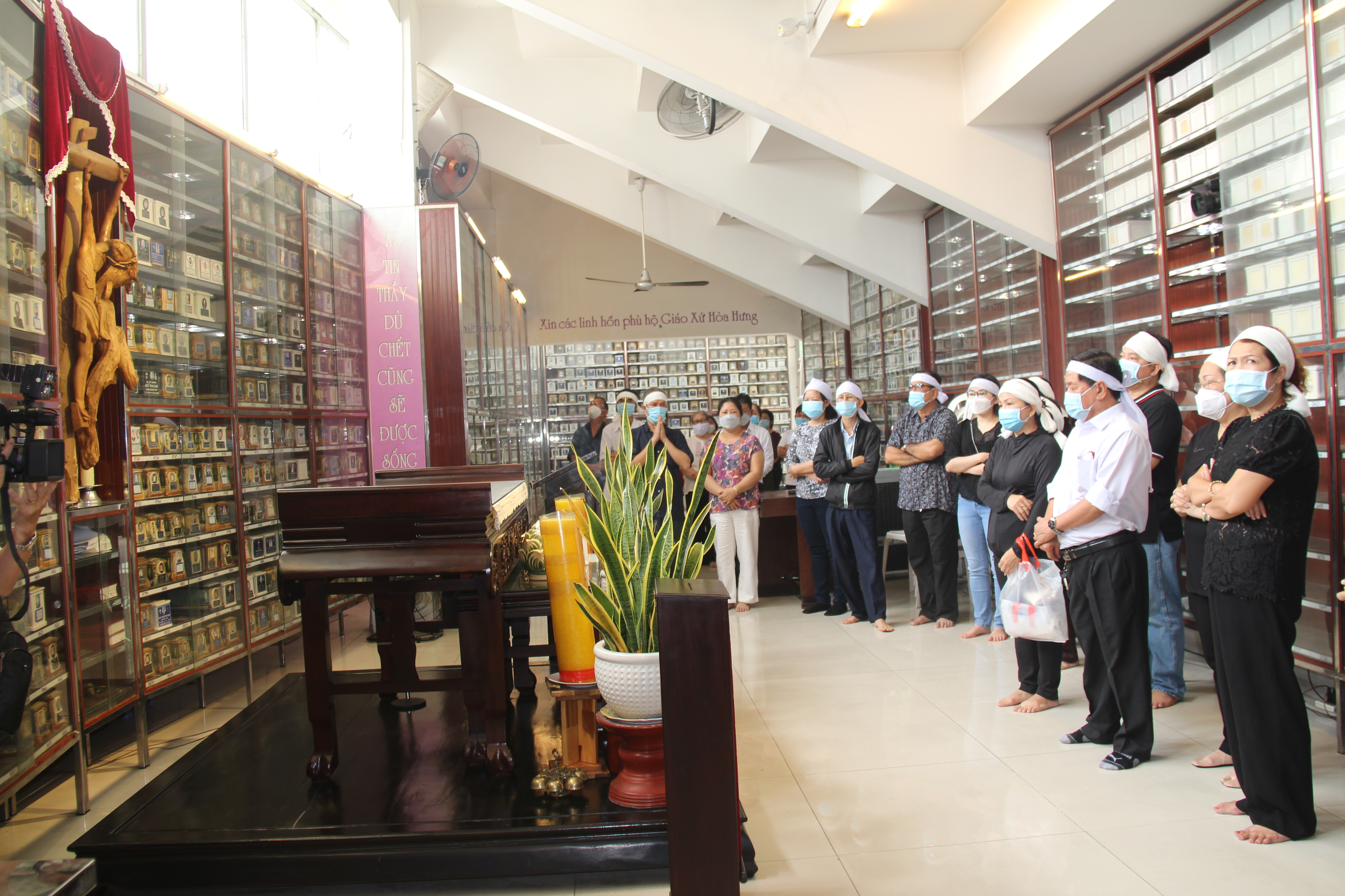 Ông Giuse Ðặng Văn Chiến (Trưởng ban Bêtania - quản lý nhà an nghỉ giáo xứ Hòa Hưng) cho biết, theo lời mời gọi của HÐGM VN và TGP TPHCM, trong ngày Chúa Nhật 17.10, giáo xứ cử hành 9 thánh lễ (giới hạn 60 người tham dự ở mỗi lễ). Những tháng qua, giáo xứ có trên 60 người mất vì Covid-19. Trước đó đã dự kiến khi tình hình ổn định trở lại, giáo xứ sẽ cử hành lễ tang quy tụ tất cả các gia đình có người thân qua đời trong đại dịch, nhưng đến nay vẫn chưa thể tập trung đông người, nên các gia đình xin lưu hài cốt và xin lễ theo ý riêng. Ðồng hành với cộng đoàn Dân Chúa, kể từ khi TGP cho phép cử hành thánh lễ cộng đoàn trở lại, giáo xứ Hòa Hưng đã tạo điều kiện hết sức có thể giúp các gia đình cử hành nghi thức tưởng nhớ người quá cố. Trong đó, có nhiều nhà thực hiện nghi thức phát tang tại gia, xin đem hài cốt vào nhà thờ để cộng đoàn hiệp dâng thánh lễ cầu nguyện và sau cùng đưa di cốt vào nhà chờ Phục Sinh. Gần 7 năm qua kể từ khi lập nhà chờ Phục Sinh, giáo xứ Hòa Hưng miễn phí hoàn toàn hũ cốt (theo mẫu chung) cũng như chi phí lưu hài cốt cho mọi thành phần Dân Chúa. Thời dịch bệnh, một số gia đình muốn giữ hũ cốt mẫu riêng khi đưa từ bên ngoài về, giáo xứ vẫn tôn trọng mong muốn của họ.