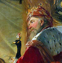 Khi Chúa Giêsu được đưa đến, vua Hêrôđê triệu tập triều đình và truyền dẫn Chúa Giêsu ra. Ông tưởng Chúa Giêsu sẽ làm một phép lạ cho ông vui để lấy lòng ông, và các quan trong triều cũng vui nữa. Thế nhưng Chúa Giêsu chẳng hề mở mệng nói với ông một tiếng nào. Ông rất giận. Và để hả giận, ông trả đũa bằng cách khoác cho Người một chiếc áo trắng, ý nói Chúa Giêsu là một kẻ khùng điên. Rồi ông gửi Người lại cho Philatô.