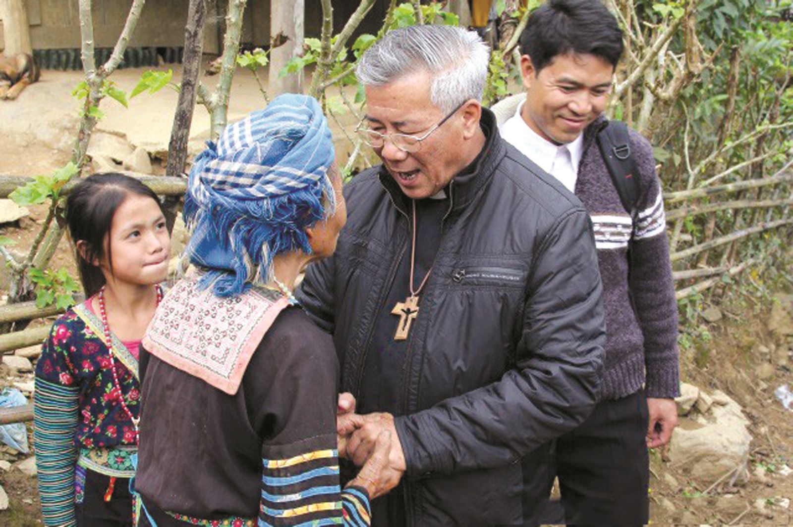 Trong ảnh: Đức Giám mục Anphong Nguyễn Hữu Long thăm viếng giáo dân nghèo các dân tộc thiểu số tại vùng Tây Bắc