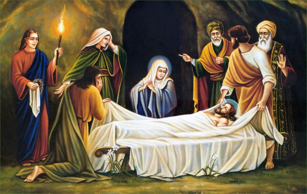 Chúa Giêsu Kitô được ướp xác: “Ông (Nicôđêmô) mang theo một trăm cân mộc dược trộn với trầm hương. Các ông lãnh thi hài Đức Giêsu, lấy băng vải tẩm thuốc thơm mà quấn theo tục lệ chôn cất của người Do Thái”. (Ga 19,39-40 // Mt 27,59 // Mc 15,4-6 // Lc 23,53).