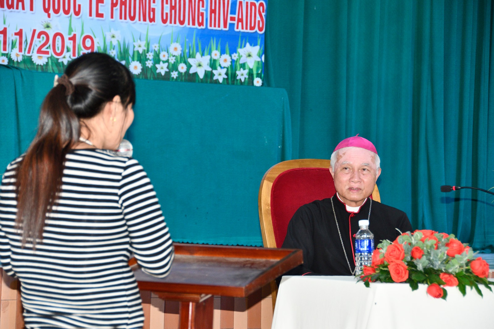 Ðức cha Giuse đã lắng nghe tâm tư, nỗi lòng của người nhiễm H và thân nhân. Có những câu chuyện được kể lại đầy nước mắt vì không nén được niềm xúc động. Ðáp lại những lời bộc bạch ấy, ngài tâm tình: “Thiên Chúa vẫn đang yêu thương anh chị em theo cách của Người. Chính khi khám phá ra được tình yêu của Thiên Chúa dành cho mình, anh chị em sẽ có sức mạnh, sống an bình hơn ngay cả lúc còn nhiễm bệnh, hay bị người thân bỏ rơi”.Sau phần gặp gỡ, Ðức cha Giuse tặng quà cho họ, trong số đó có 20 thẻ bảo hiểm y tế. Ngài cũng đã dâng thánh lễ cầu nguyện cùng với toàn thể cộng đoàn hiện diện. Chương trình khép lại sau bữa ăn chung thân mật. (giaophanxuanloc.net)