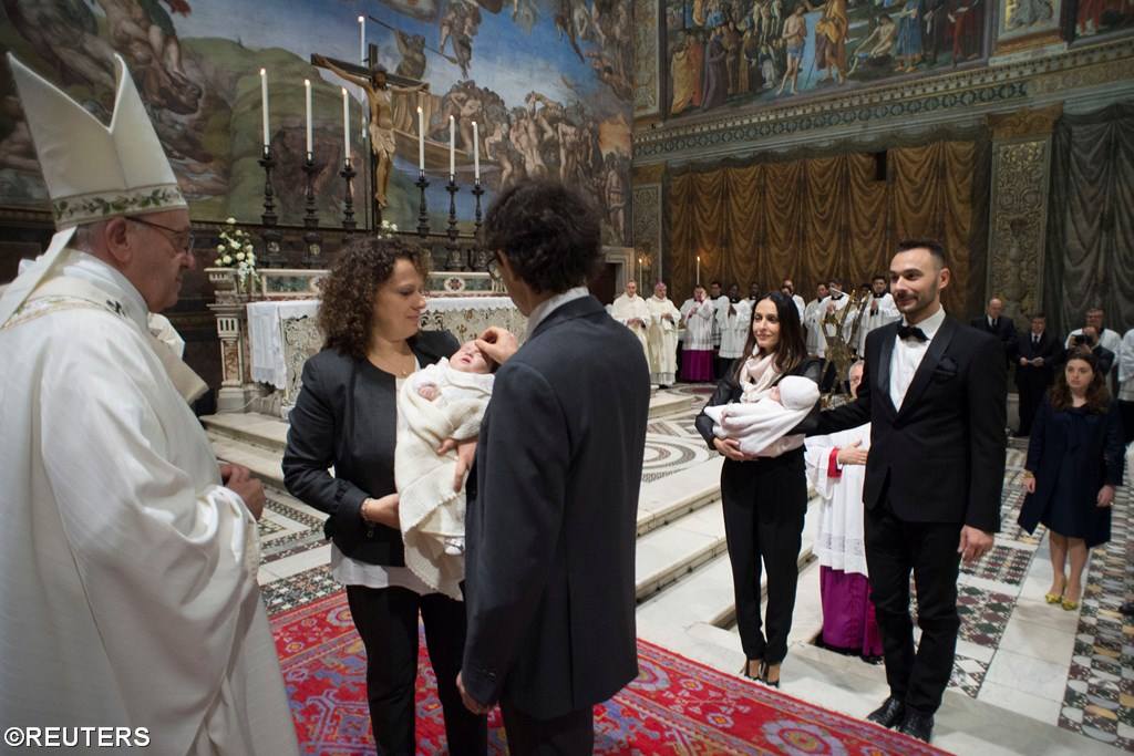 Đức Phanxicô đã rửa tội cho 34 em bé, là con của các nhân viên tại Vatican tại nhà nguyện Sistine, và ngài đã nói với phụ huynh các bé rằng cha mẹ chính là những người đầu tiên truyền giảng đức tin cho con trẻ. Đức Thánh Cha đã tỏ ra rất vui với mỗi giây phút ngài chúc lành cho 18 bé gái, 16 bé trai, và cử hành bí tích rửa tội cho tất cả các bé.