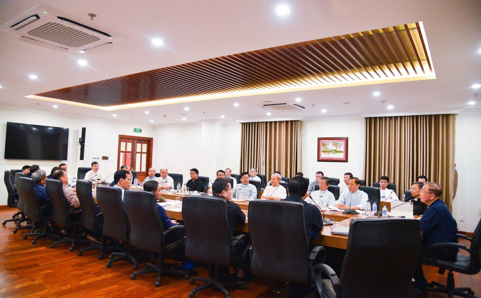 Ngày 5.10.2023, tại Tòa Tổng Giám mục Hà Nội, Đức Tổng Giám mục Giuse Vũ Văn Thiên đã chủ tọa buổihọp thường niên Hội đồng Linh mục Tổng Giáo phậnHà Nội.Nội dung buổi họp xoay quanh các vấn đềnhưáp dụngVăn kiện hậu Công nghị TGPHà Nội, tiêu chuẩn thiết lập giáo xứ mới, việcquản lý xây dựng, nhà hưu dưỡng,các việc có thể triển khai trong Năm Canh tân đời sống các hội đoàn, vấn đề mục vụ di dân, hoạt động của văn phòng các uỷ ban, vấn đề dạy và học giáo lý…(tonggiaophanhanoi.org)