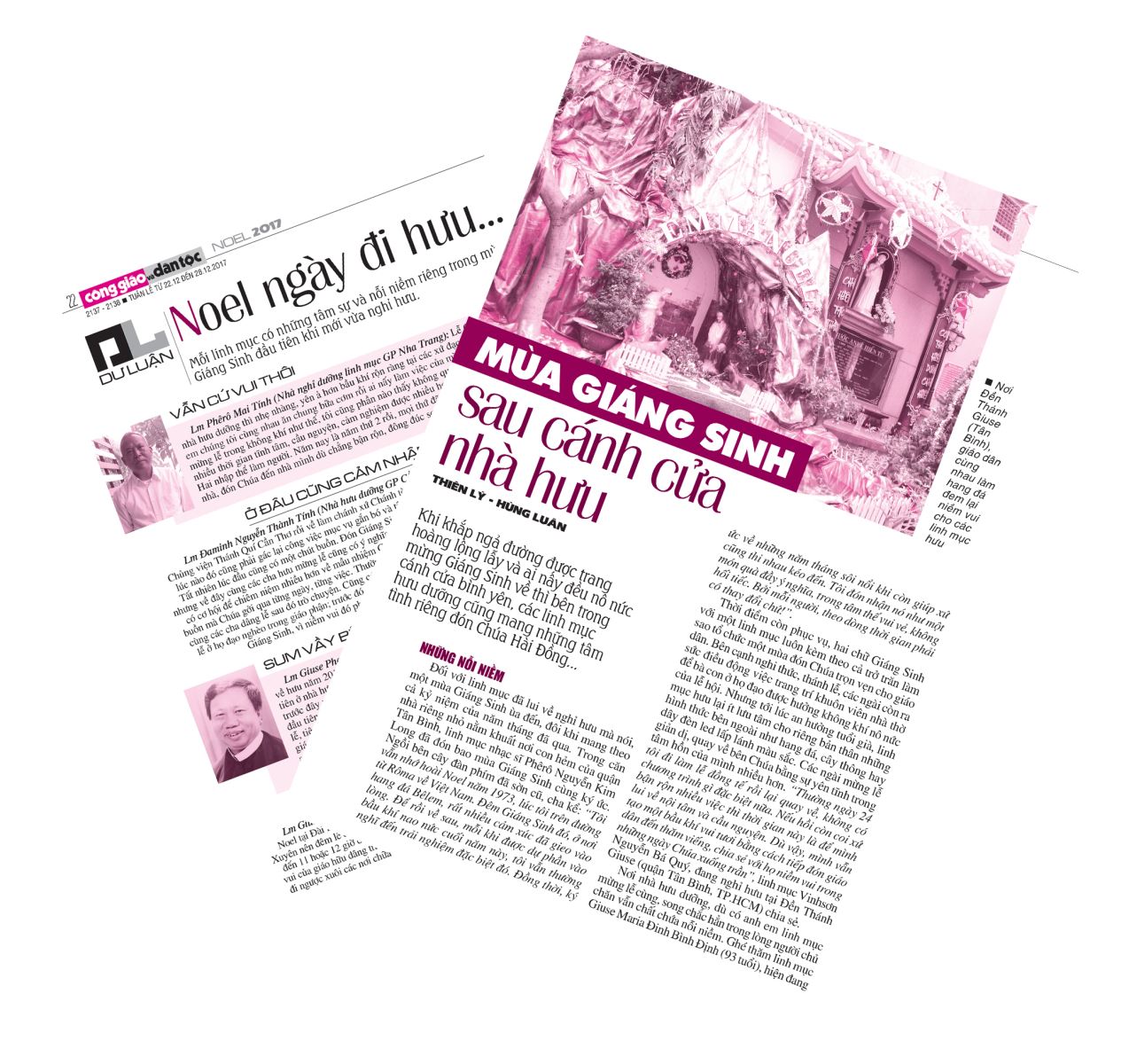 Trong số báo Noel 2017 của Công giáo và Dân tộc có loạt bài nói về kỳ Giáng Sinh của các linh mục nghỉ hưu như “Mùa Giáng Sinh sau cánh cửa nhà hưu”, “Noel ngày đi hưu”… Ngay sau đó, mục Dấu chân mục tử, số 2139 viết về cha P.X Ðinh Quang Tịnh, 94 tuổi, sống lặng thầm những ngày cuối đời trong nhà hưu dưỡng sau chặng đường dài phục vụ… Dầu đã già nhưng các cha dường như còn nhiều lo lắng, trăn trở. Có vị viết sách, viết nhạc, có cha cộng tác với các linh mục nơi giáo xứ để giúp giải tội, dâng lễ… rất nhiệt tình. Những bài viết cho người đọc thấy tâm thế đón nhận tuổi già của các ngài một cách rất sẵn sàng, lạc quan.