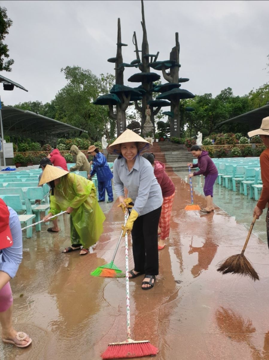Linh đài Đức Mẹ La Vang được dọn rửa sau khi nước lũ rút hết |