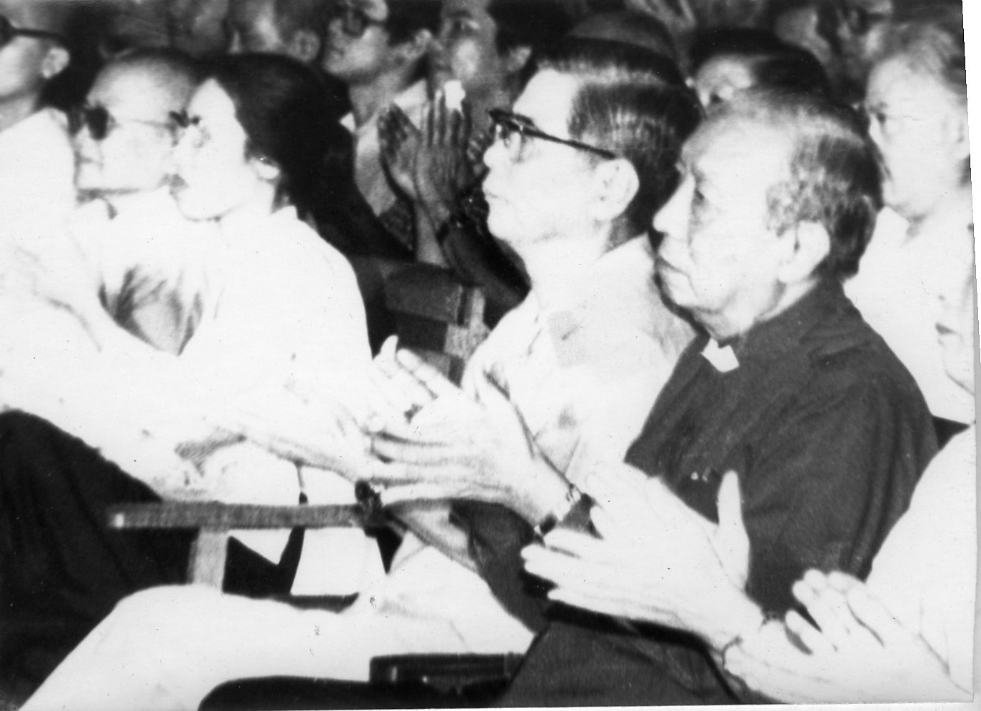 Bí thư Thành ủy TPHCM Nguyễn Văn Linh và Đức TGM Phaolô Nguyễn Văn Bình tại một buổi diễn văn nghệ của giới Công giáo