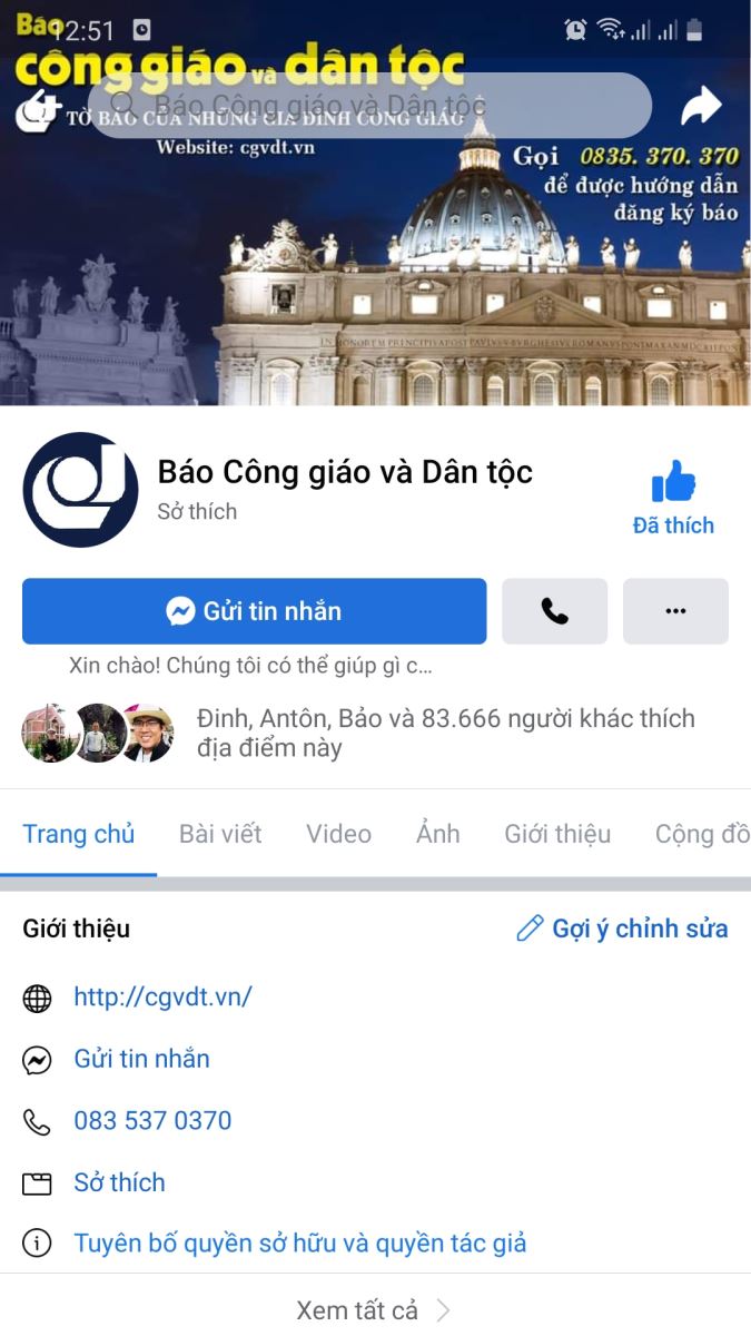 Nếu như báo giấy CGvDT gặp khó khăn trong việc vận chuyển đến các tỉnh thành, nhất là đến các vùng sâu vùng xa thì trang Fanpage báo Công giáo và Dân tộc mở ra một hướng tiếp cận với bạn đọc Công giáo và độc giả khác trên khắp mọi miền đất nước một cách dễ dàng, nhanh chóng.