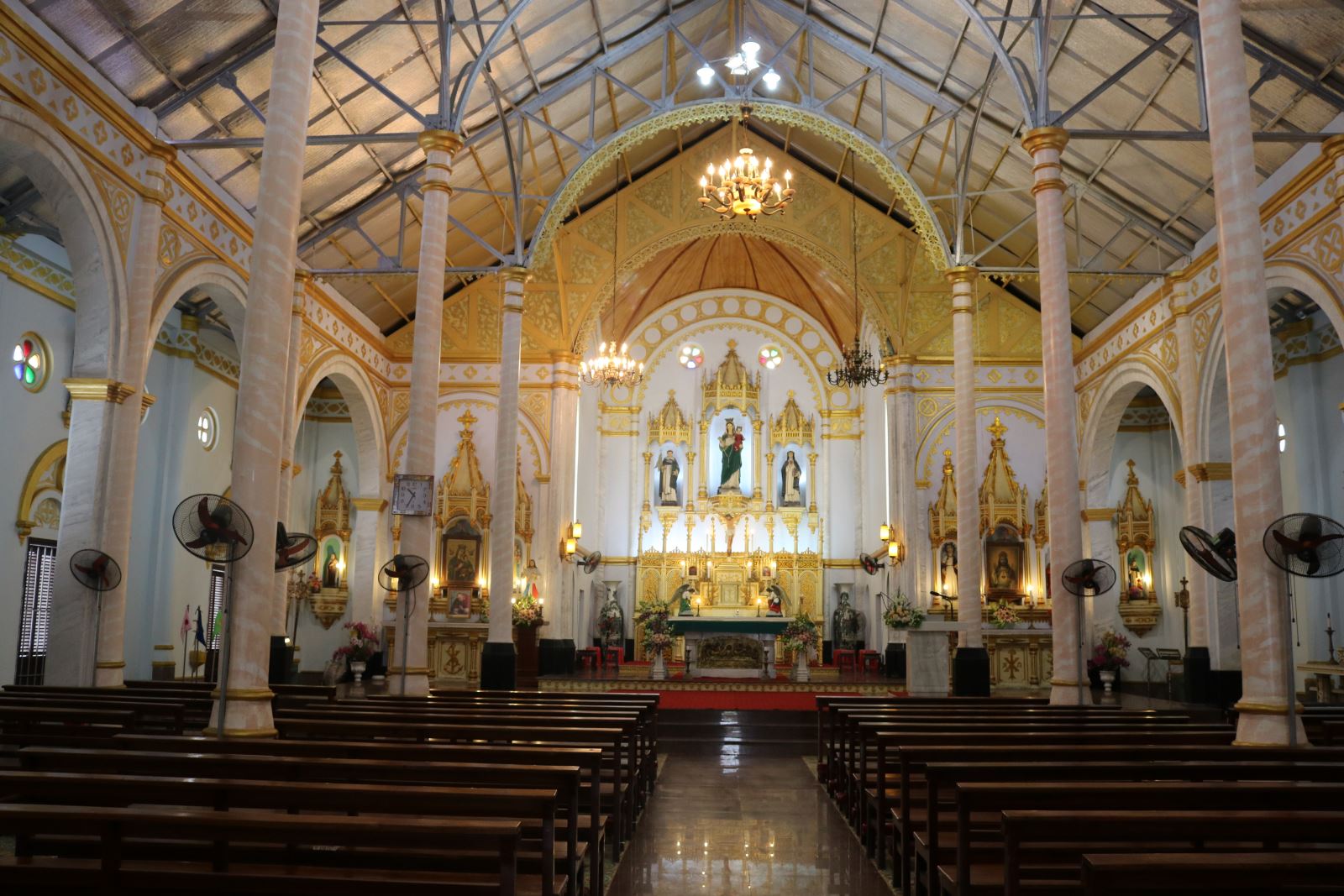 Men theo những nẻo đường đê, băng qua ruộng hành, củ đậu, bắp cải…, khách ghé thăm nhà của Chúa. Mái nhà 105 tuổi rêu phong vẫn sừng sững giữa đất trời. Thánh đường là một công trình kết hợp của 2 phong cách kiến trúc Á - Âu. Khác với nhiều nhà nhờ đất Bắc, gian cung thánh không được sơn son thiếp vàng mà nổi bật với những đường nét, cụm trang trí vàng rực trên nền trắng khiến khách ghé thăm có cảm giác choáng ngợp trước vẻ đẹp lộng lẫy, uy nghi. Với đoàn chiên họ đạo, đây là nhà tổ, nơi tụ họp, quây quần cùng nhau và là chốn yêu thương mỗi lúc nhớ về của những người xa xứ.