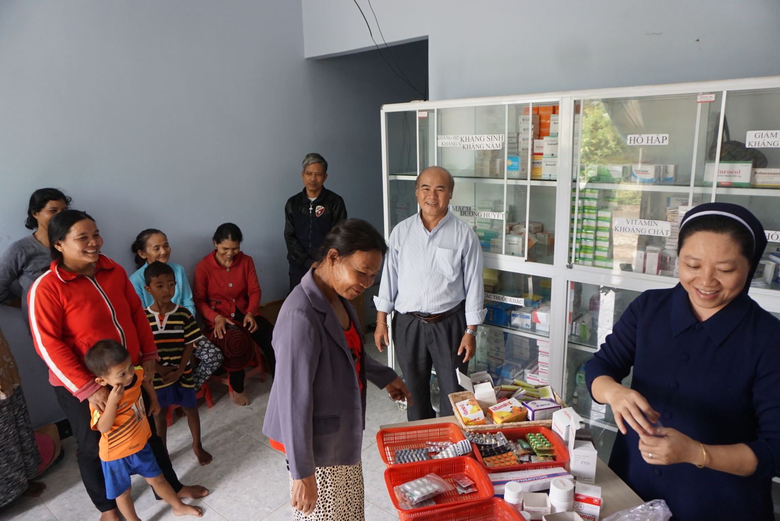Ghé thăm trung tâm vào một buổi sáng, cụ bà tên K’Rup chia sẻ với chúng tôi niềm vui sướng vì lâu nay, mỗi lần bị đau nhức không còn phải đi xa xin thuốc nữa. “Giờ cứ hễ đau cái bụng, chỉ cần ra nhà thờ là các sơ cho thuốc về uống thôi. Cái bụng không còn đau, con cháu trong nhà cũng khỏe mạnh nên làm rẫy cũng được nhiều hơn”, bà nói. Tại đây, chúng tôi còn được nghe những bệnh nhân như ông Sohao Ha Hông, bà K’Lai chia sẻ về tình cảm dành cho cha sở và các dì tại nhà thuốc… Theo cha Sỹ, nước sạch, thuốc menlà thứ mà người dân tộc thiểu số vốn rất thiếu. Vậy nên những chương trình cha mở ra đã phần nào xua tan đi nỗi lo lắng đó của bà con.