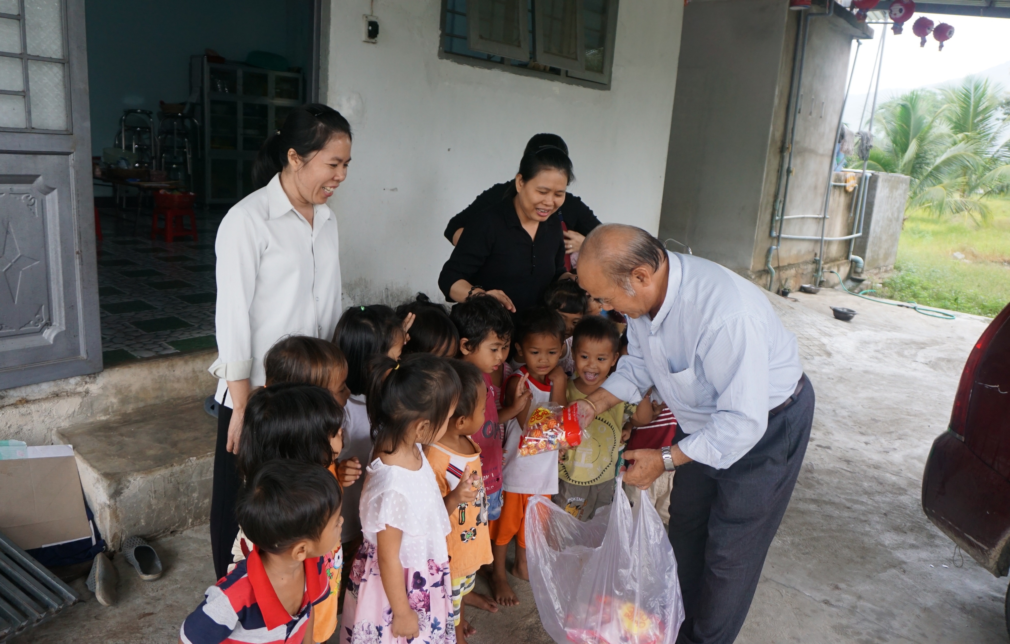 Mỗi lần ghé nhà trẻ, ông cố đều mang theo quà làm niềm vui cho các em - ảnh: Phú Thịnh