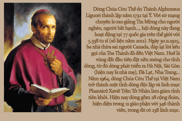 Tiếp nối tinh thần của thánh Alphonsus Liguori - đấng sáng lập - gần một thế kỷ hiện diện ở Việt Nam, dấu chân của các tu sĩ dòng Chúa Cứu Thế đã in hằn lên nhiều vùng đất, từ thành thị cho đến các miền thôn quê, núi đồi xa xôi. Tại mỗi nơi chốn đi qua, các ngài đã âm thầm phục vụ và hy sinh, làm cho công cuộc rao giảng Lời Chúa đi sát với phương châm “tất cả cho người nghèo”.