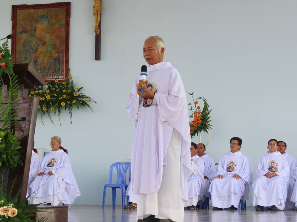 Cha Đaminh Nguyễn Hữu Trung – quản nhiệm trung tâm hành hương Đức Mẹ La Mã Bến Tre trong dịp lễ kỷ niệm Đức Mẹ Lộ Hình tại TTHH |