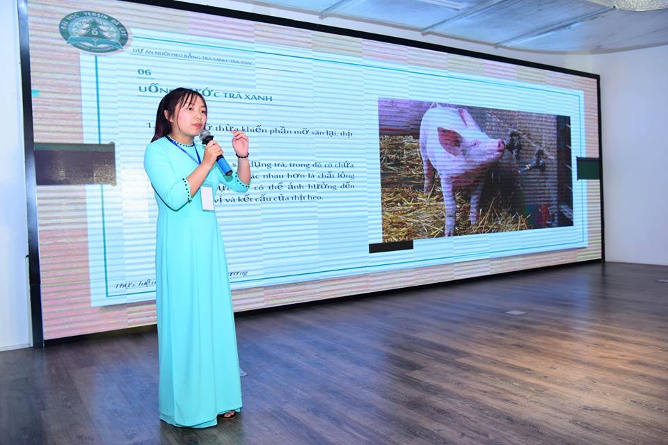 Hoài Thương trình bày dự án trong cuộc thi "Ý tưởng sáng tạo khởi nghiệp sinh viên" |