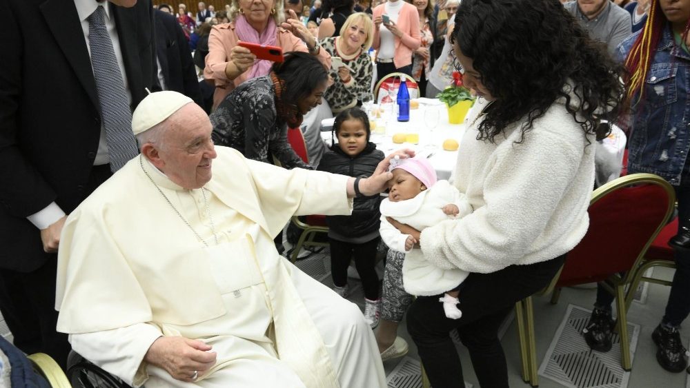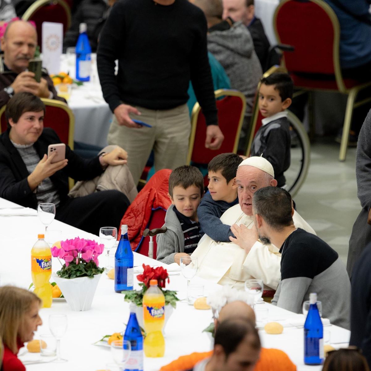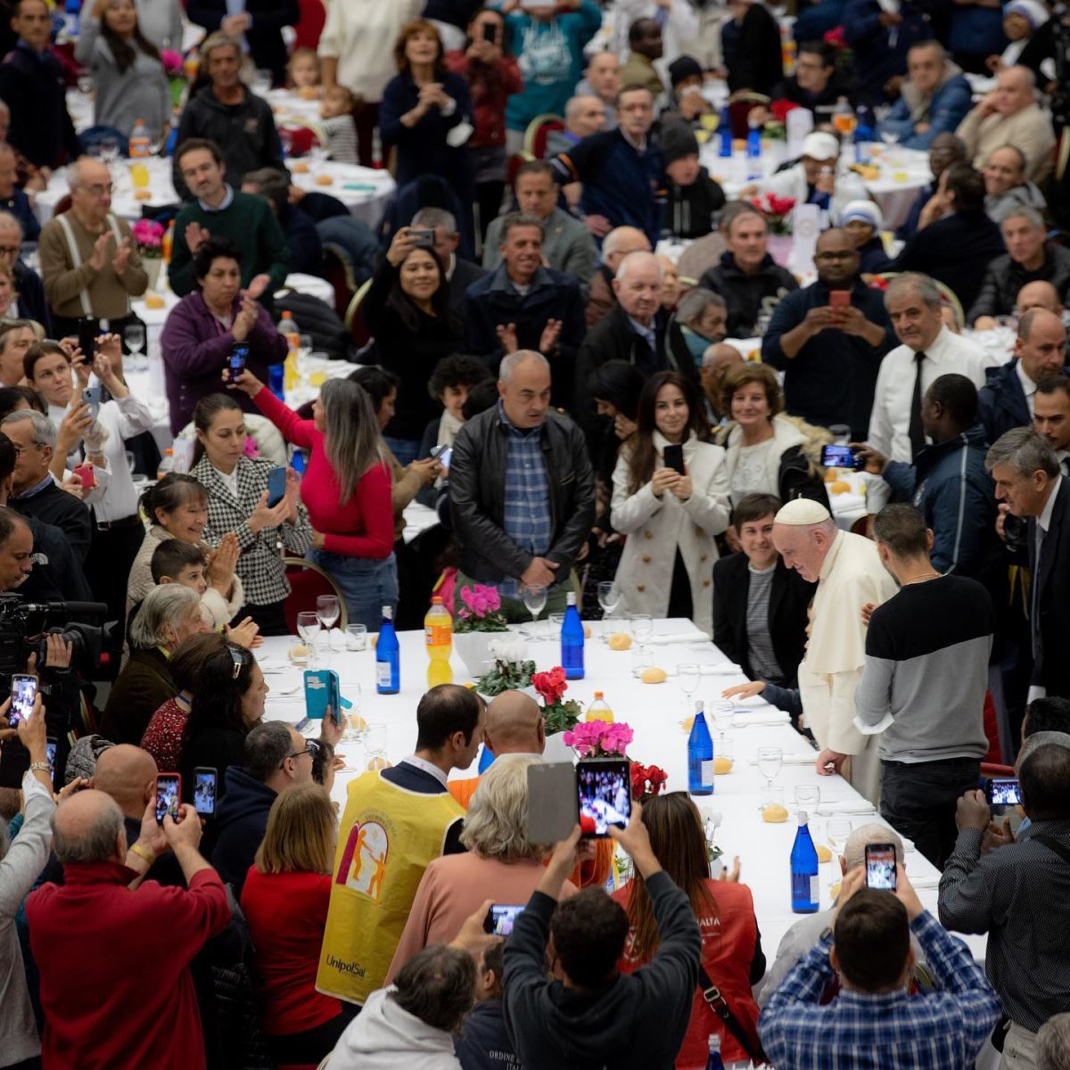 Chúa nhật 13.11 - Ngày Thế giới vì Người nghèo, Đức Giáo Hoàng Phanxicô đã dùng bữa trưa tại đại thính đường Phaolô VI ở Vatican với khách mời là những người có hoàn cảnh khốn khó tại Rome.